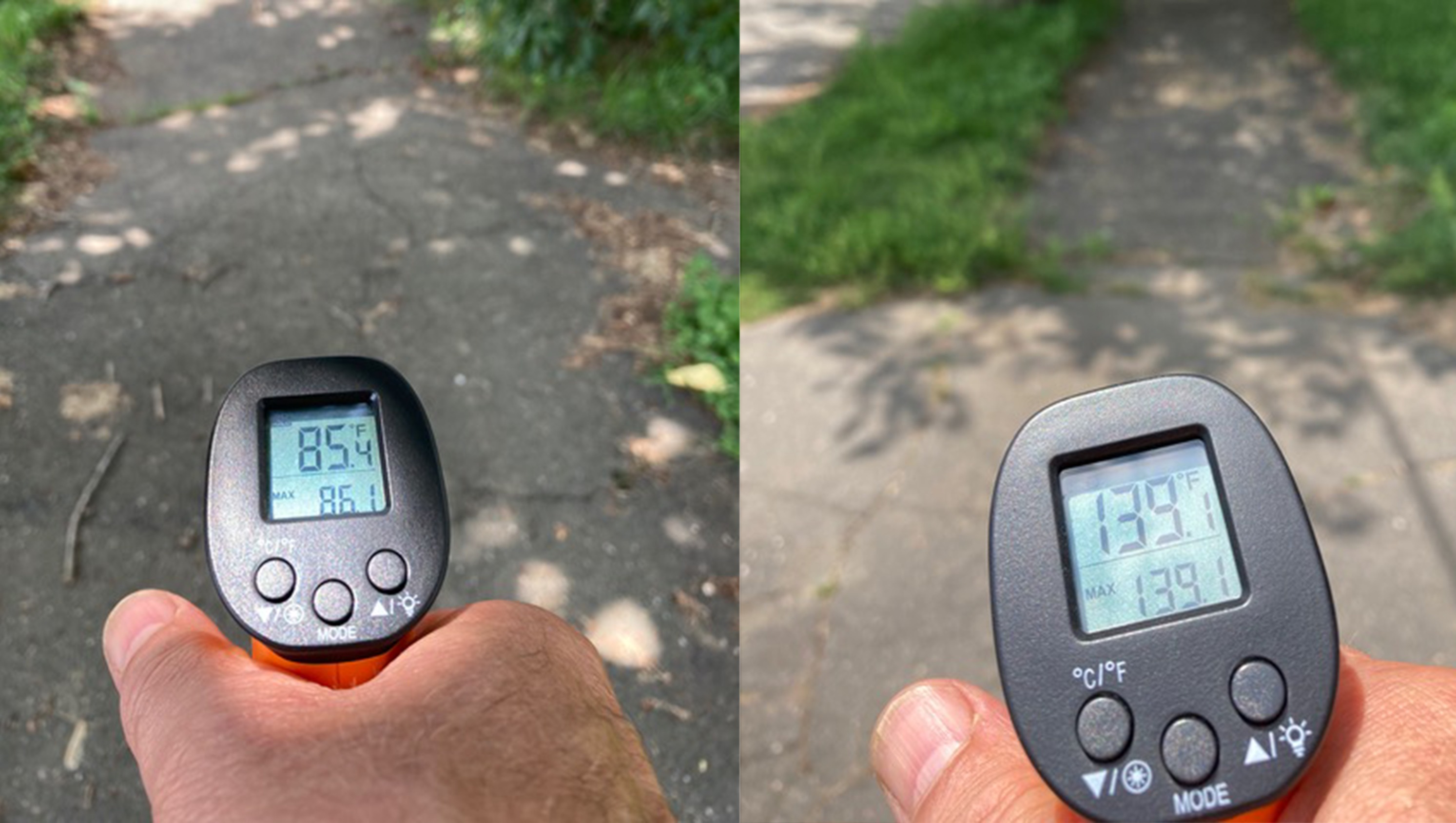 We have a Change dot org petition that we ask you to sign also. Note that the shade temperature reading on a hot day is 85 degrees F under the trees, but 139 degrees F in the sun.