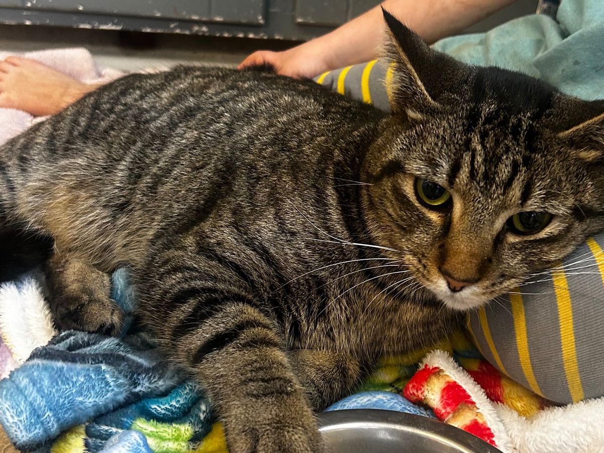 This is my son's best friend; this cat saved my life as well. I don't know the extent of her injuries, as I couldn't afford an x-ray.