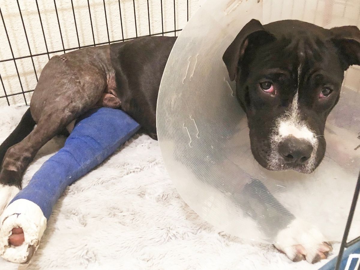 Thankfully a good samaritan discovered this young baby boy after being hit by a car, both legs severely fractured, underbelly bloody with road rash, a sign of being dragged while being hit - and left for dead. Bucky ended up at a high kill shelter where most dogs in his condition are euthanized due to a lack of resources. He had just a few hours to be saved.