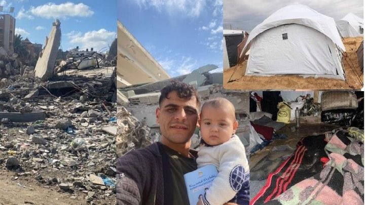 My name is Mounir Youssef Salama. I am 24 years old and my wife and I have a new baby boy. We have been displaced in the south of the Gaza strip for months after the occupation destroyed our home; we depend on this fundraiser to survive. My extended family lives with us, including many young nieces and nephews (pictured in my cover photo).