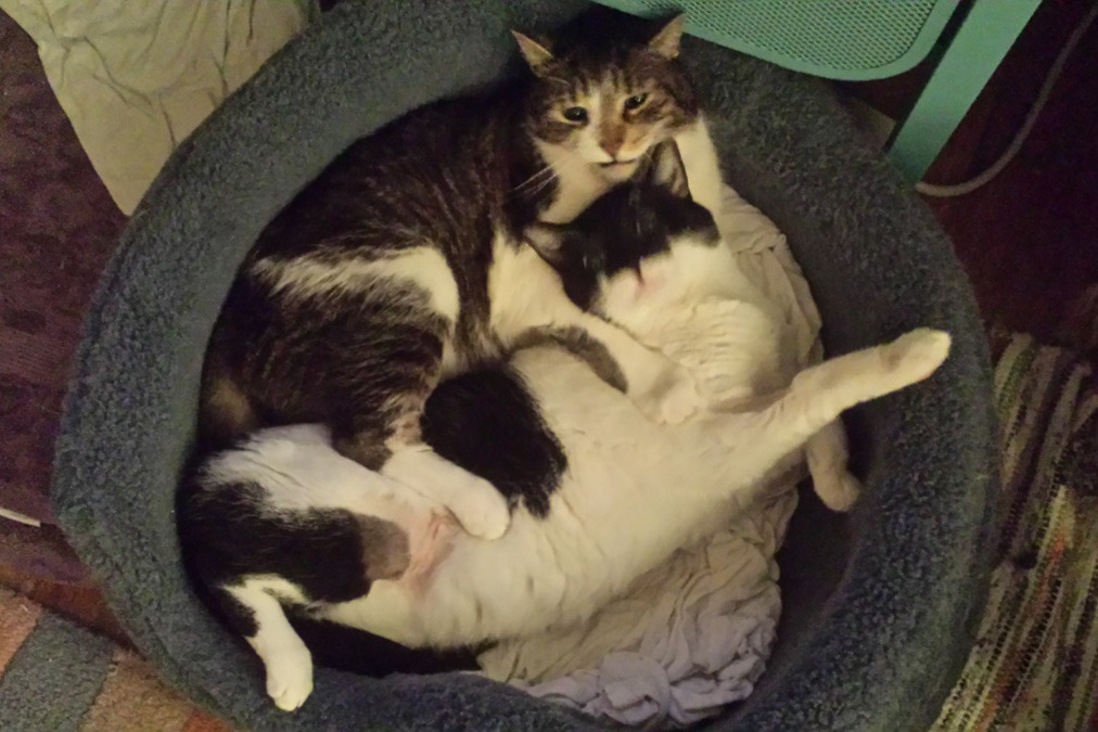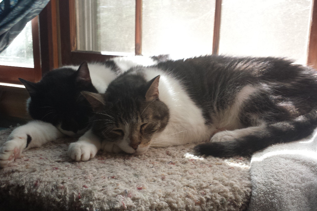 A few years ago, I left the only life I'd ever known to escape familial abuse. I am alone with my cats now, so grateful to have my sweet companions. Ped and Bu were ferals, have never been apart a day in their lives, and are so symbiotic, they are more like 2 sides of one big cat than 2 separate cats. I'm scared for Bu, for what will happen if he loses Ped, he needs his brother. They need each other. And I need them both, my sweet, sweet boys. I just love them so much. My heart breaks for not being able to give them the care they deserve.