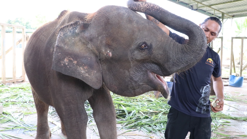 This is Adun, he is a 7 year old Bornean Pygmy Elephant. In 2017 he was rescued from a pond that he fell into and was stuck, near Telupid, Sabah, Borneo.