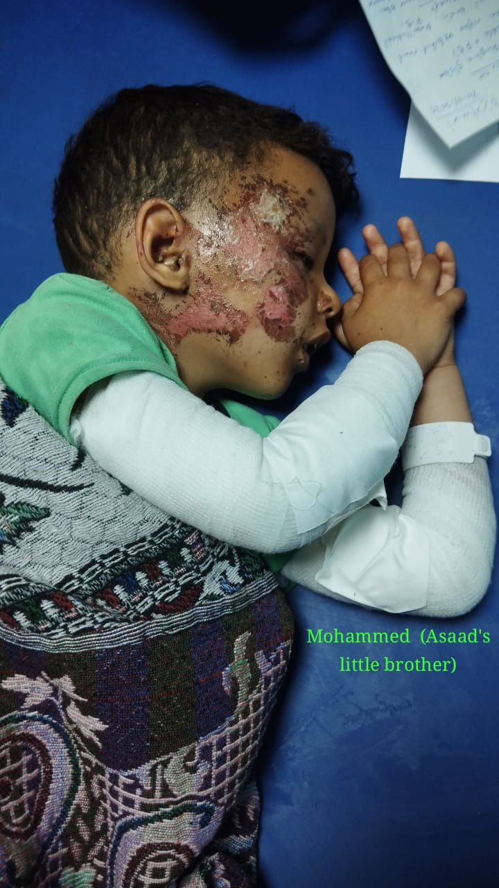 Asaad urgently needs surgeries, a prosthetic leg, pain medication, burn treatment, psychological support, and even basic clothes — he’s lost everything.