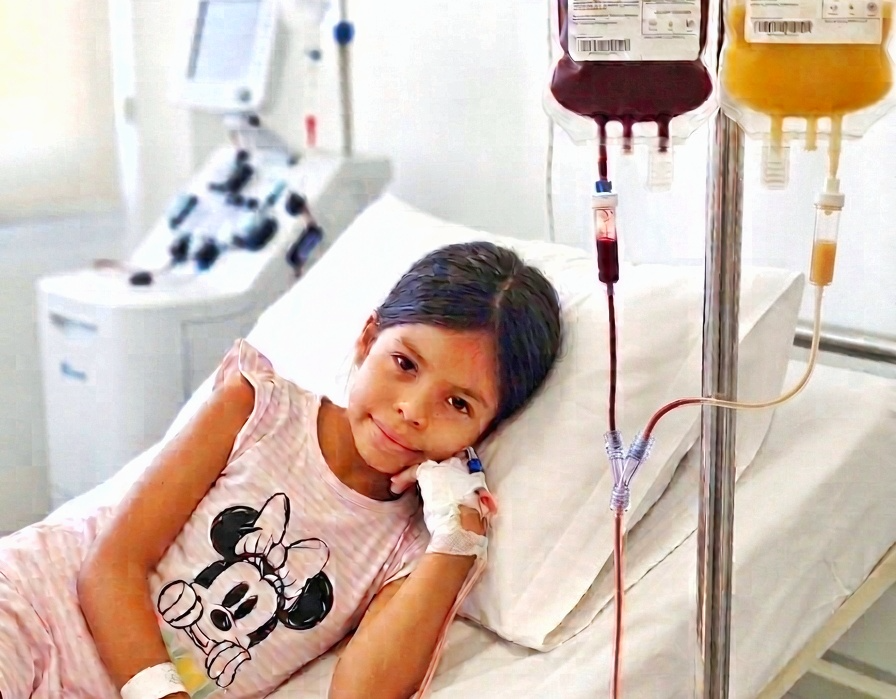 Briana ha sido diagnosticada con Aplasia Medular Severa. Su médula ósea ha dejado de producir la sangre que su cuerpo necesita para sobrevivir. En este momento, está atada a una cama de hospital, recibiendo transfusiones de sangre y plaquetas cada 4 o 5 días solo para mantenerse estable.