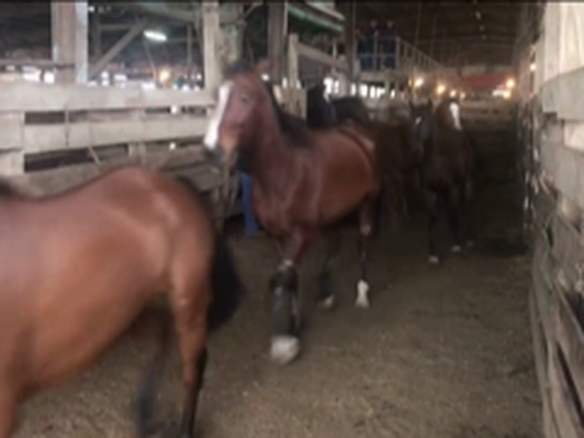 The horses in the loose sale often go to the kill buyer who owns the auction house, or the other kill buyers who attend, hoping to profit from cheap horses by then sending them to Mexico to be slaughtered for their flesh.