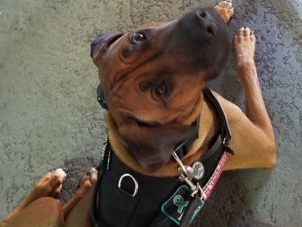 Marshall is our beloved companion and my husband’s Service Dog for his combat related PTSD. He is only 2 ½ years old has proven to be an incredible lifeline to my husband for his disability, to my two sons during this isolating pandemic, and to myself.