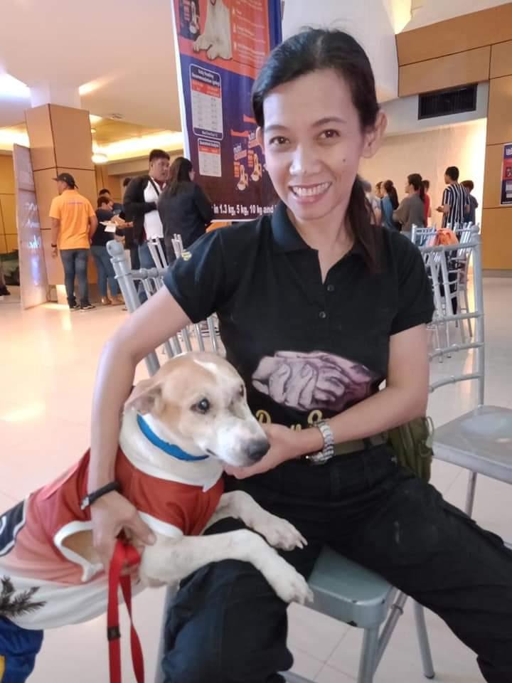 Mercy Tinee Sucro, the founder of Paw Savers Zamboanga, and Scaper after his rescue.
