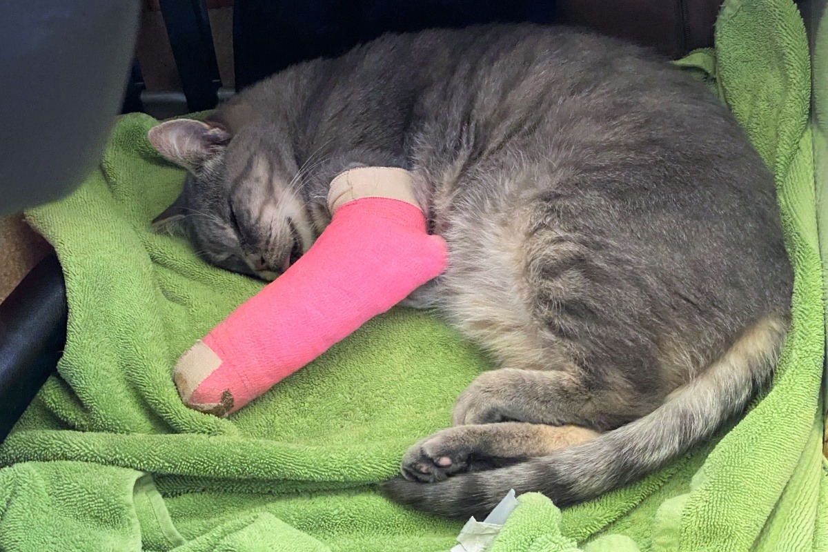 We are heartbroken that our beloved neighborhood cat Shadow, was found on 9/28 with a severe fractured leg.