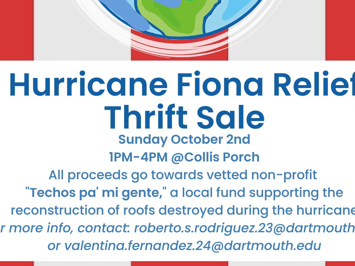 Hello! We are two Puerto Rican Dartmouth students interested in raising funds for "Techos Pa' Mi Gente" ("roofs for my people"), a local nonprofit focusing on the repair of roofs in Puerto Rico. Our beautiful island was recently rocked by Hurricane Fiona, decimating much of our fragile infrastructure and power grid that is still reeling from the effects of category 5 Hurricane Maria's direct hit five years ago. All proceeds go directly to "Techos Pa' Mi Gente," who we have known to have done excellent work five years ago after Maria and continue to do so now after Fiona. In addition to the thrift sale we're organizing for Sunday, October 2nd, we are opening this GoFundMe for open donations.