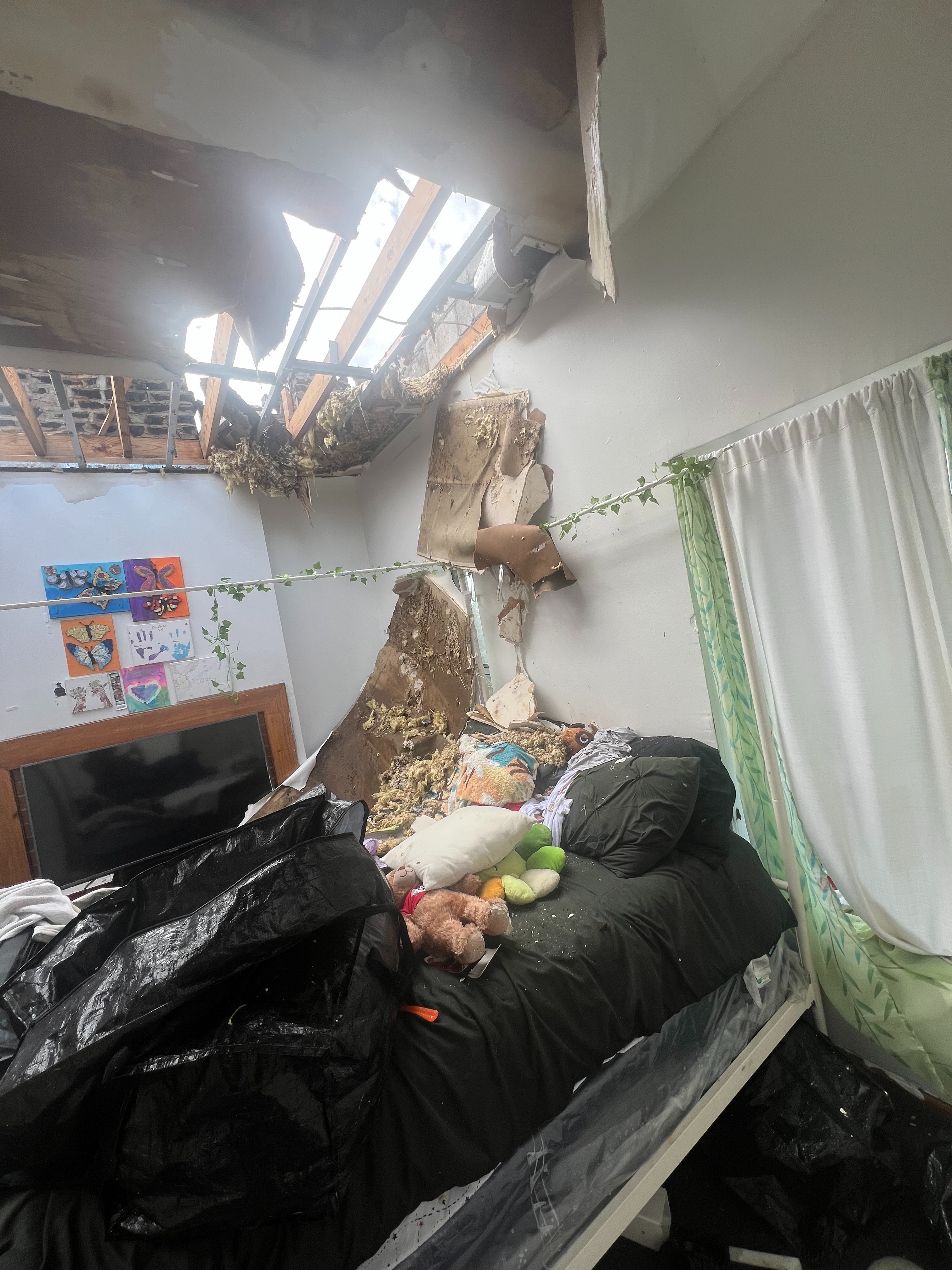 The recent tornado that hit St. Louis destroyed my room at home. I had just come back from school and finished unpacking. Everything—my computer, Ipad , school supplies, dorm decor, bedding, shoes, and most of my clothes—was damaged or completely ruined. The few clothes I could save are soaked and smell awful from all the water damage.