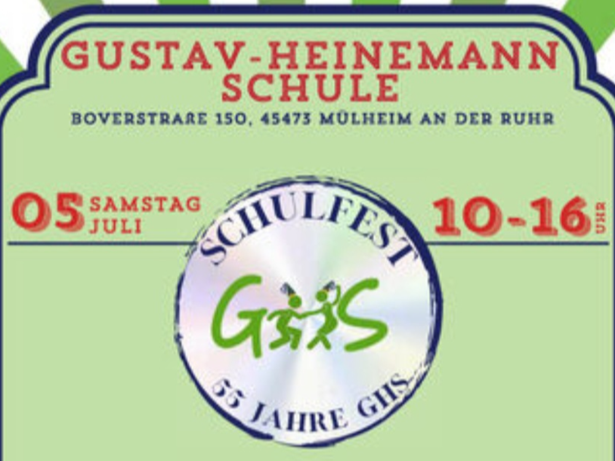 Am 5.7.25 steht das Schulfest zum 55-jährigen Bestehen der GHS in Mülheim an der Ruhr statt.