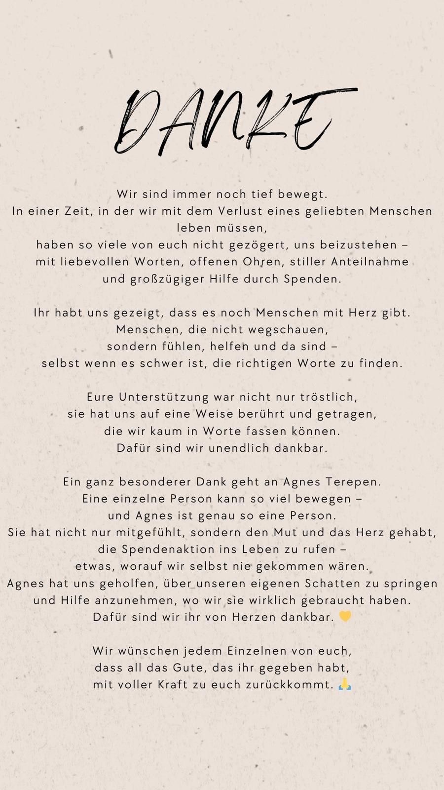 Von ganzem Herzen Danke an alle, die helfen, die teilen und mit der Familie mitfühlen.