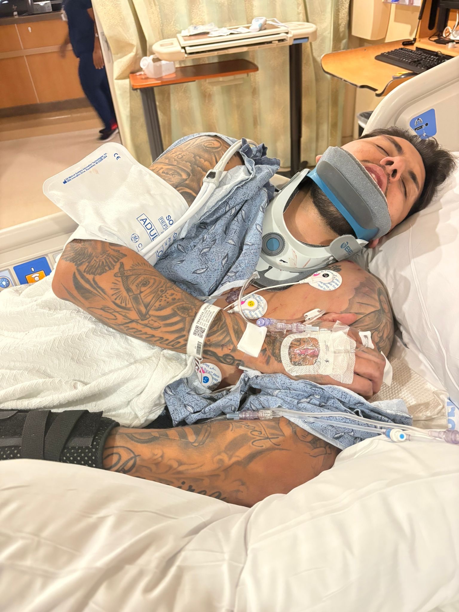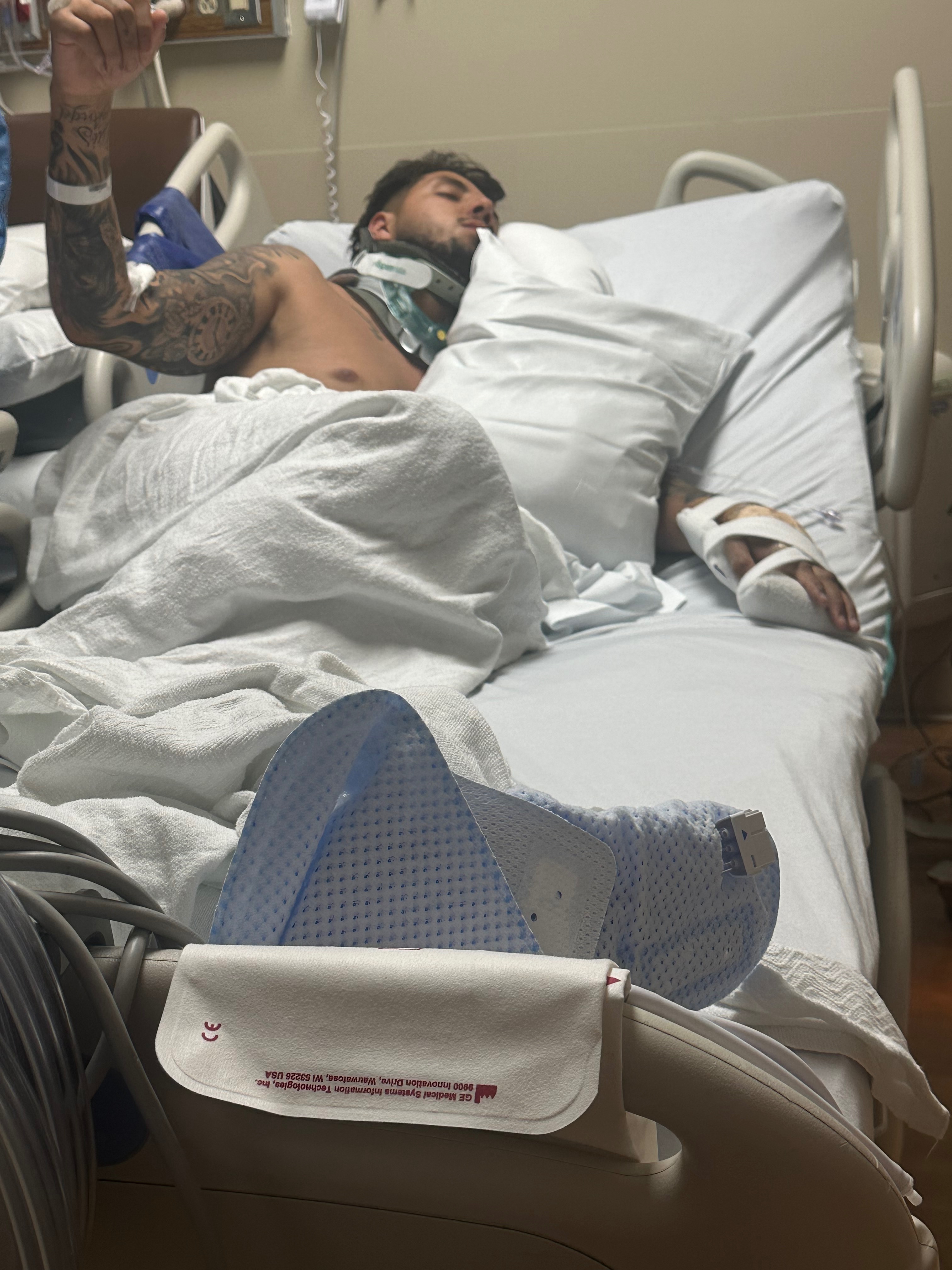 Luis suffered a fractured C1 vertebra in his neck, severe nerve damage from his neck down to his arm, bleeding in his lungs and neck, and fractures to his wrist and ankle. He currently has no feeling or movement in his left arm and will require extensive therapy and possible surgeries to regain function.