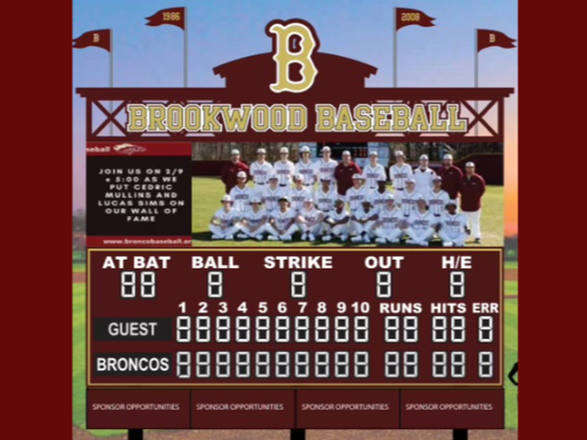 The 2024 Brookwood Baseball Program is starting a Capital Campaign at the Dave Hunter Complex and we need your support to make it happen. Please consider a donation towards our new scoreboard and video board.