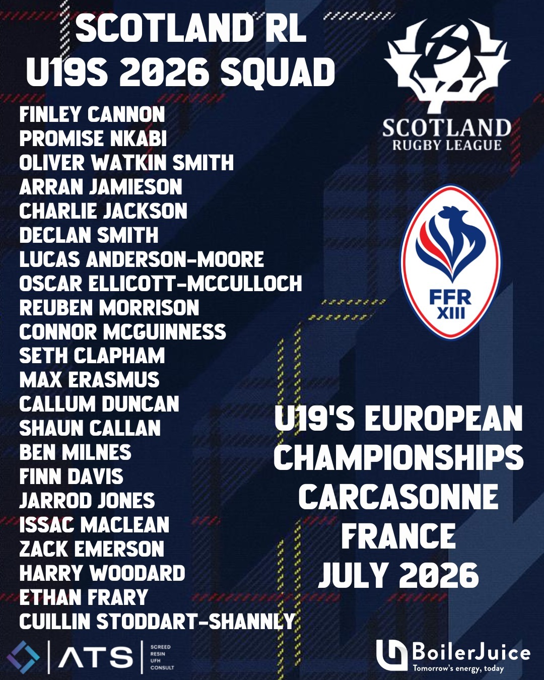 I am incredibly proud to have been selected to represent Scotland Rugby League as part of the U19s squad for the 2026 season.