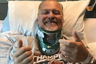 Scott's story begins in late September when he fell at home and sustained a severe spinal cord injury. On the day of the fall he was immediately air lifted to Jersey Shore trauma center where he underwent an emergency three hour surgery to relieve the compression on his spine. The outcome led to disectomies and fusion of the C4-C5 and C5-C6 vertebrae. The damage to his cervical spine resulted in Scott being classified as quadriplegic.