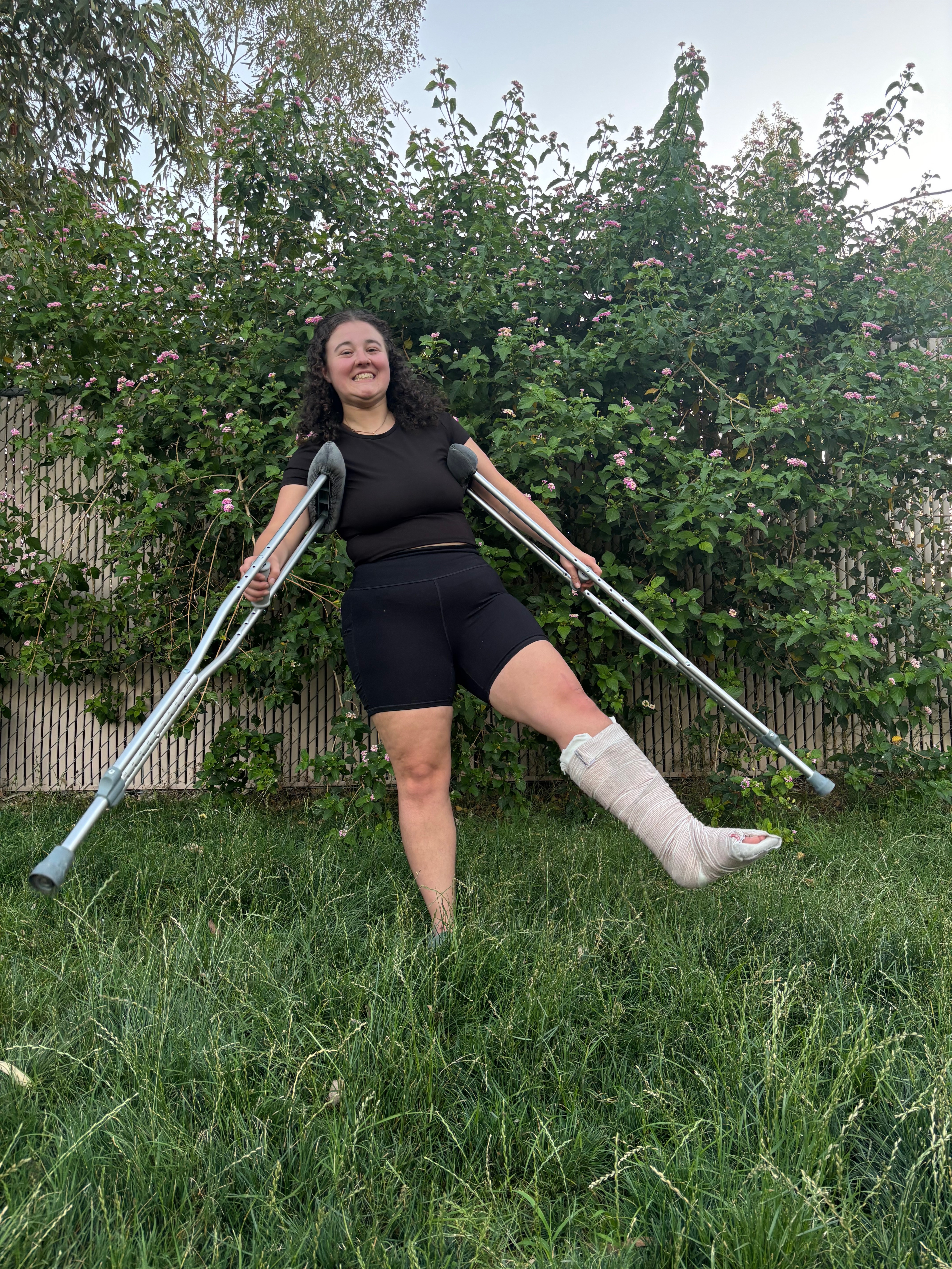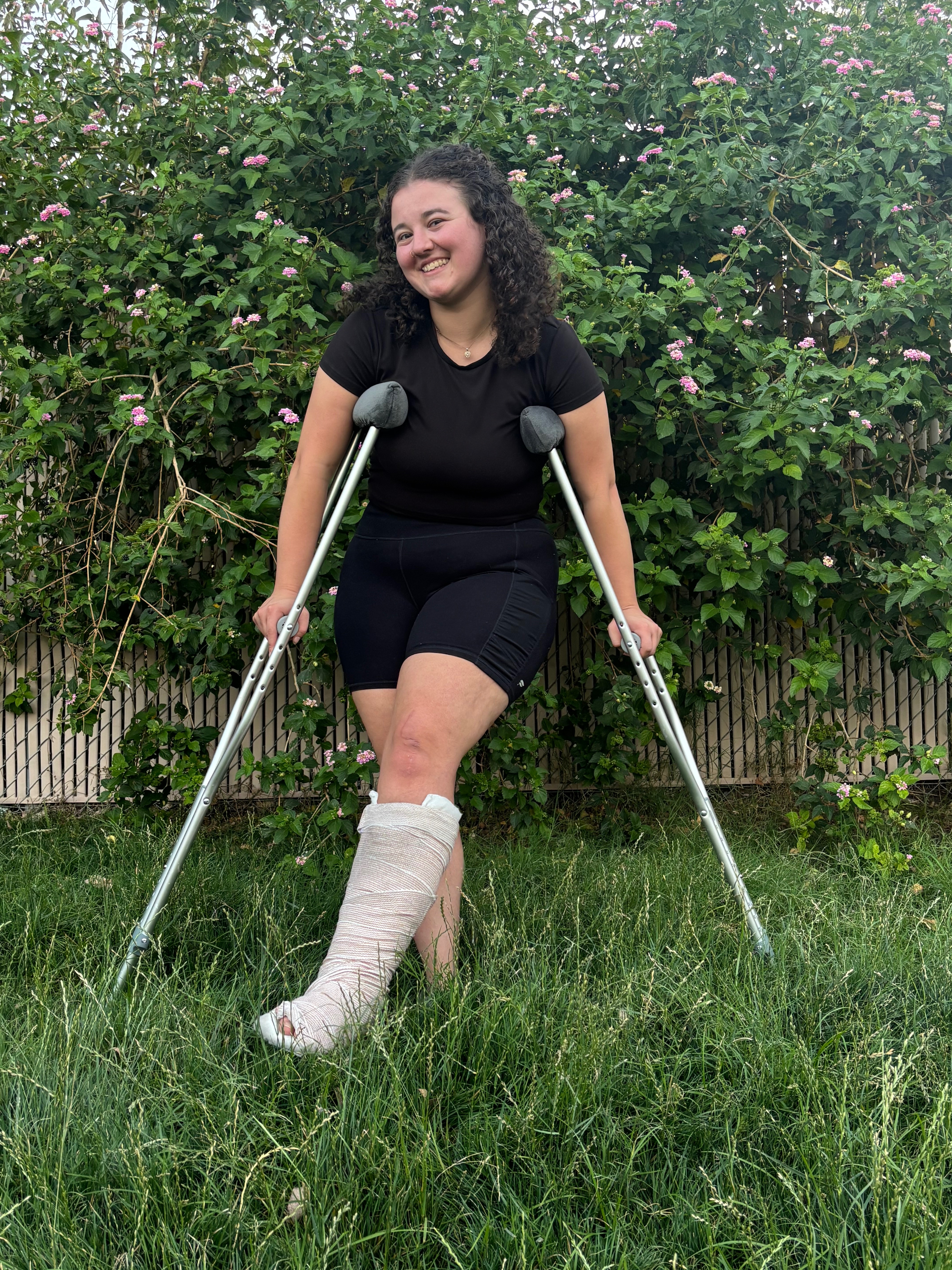 I was finishing up taking my golden doodle out potty and was walking down a set of stairs in front of my apartment when I completely missed the next step down, twisted my ankle, and crunched down on my left leg. I sent the slides I was wearing flying as well as my body down the remaining steps (lol) (ouch). I knew immediately I had broken something from the sound of the crunch. However, I managed to crawl back home as it wasn’t far from my front door, and my sweet baby boy, Mr. Squiggles, stayed by my side the entire time