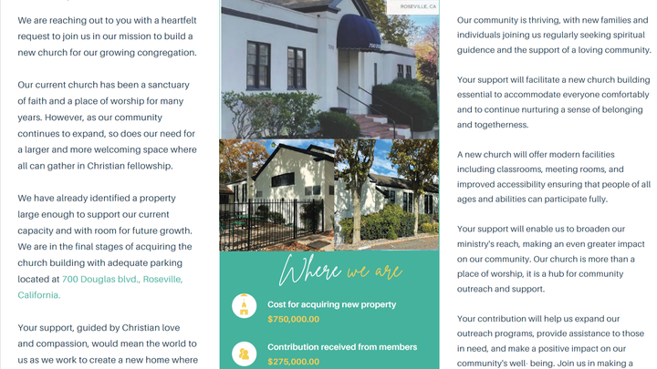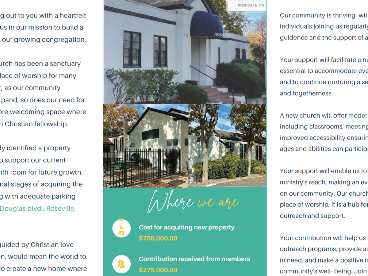 We are a Christ-centered church in Sacramento, California, united as one family. Our lives are a testament to our deep communion with the Father. Jesus Christ the Son, and the Holy Spirit. It is through the transformative power of the Holy Spirit that we are empowered to be effective witnesses of Christ and vessels for His Kingdom. In this spirit of Christian love, we warmly welcome all to join us in experiencing the abundant life found in Jesus Christ. We are in need to raise $475,000.00 to secure our church building. Your generous donation will play a significant role in helping us reach our target.