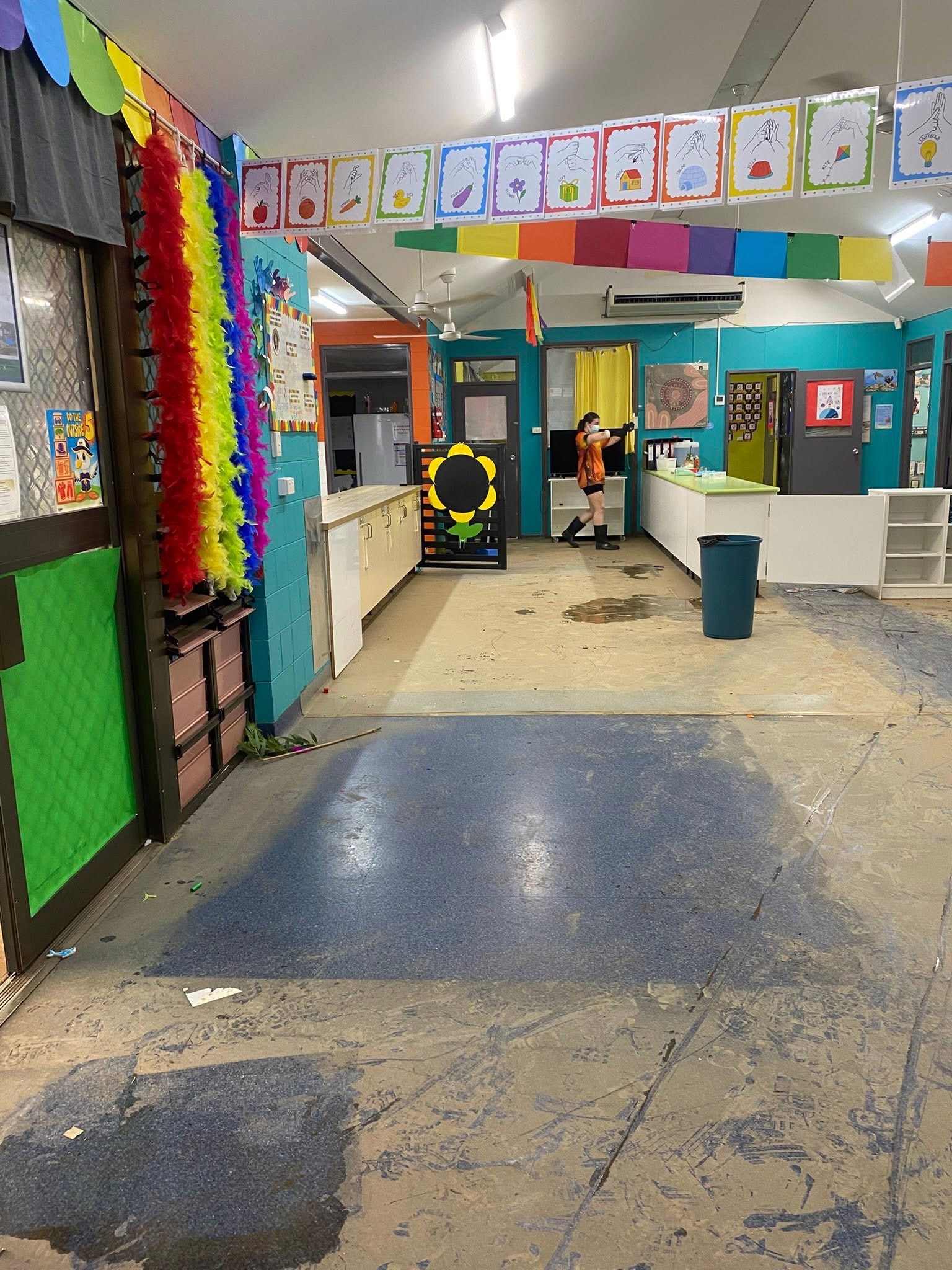 The recent floods have had a devastating impact on the centre. Their OSHC demountable took on roughly a metre of water and will need to be discontinued entirely. Inside the main building, around 20 cm of water came through—while that may not sound like much, it has caused significant damage to furniture, learning resources, and essential equipment, all of which will need replacing.