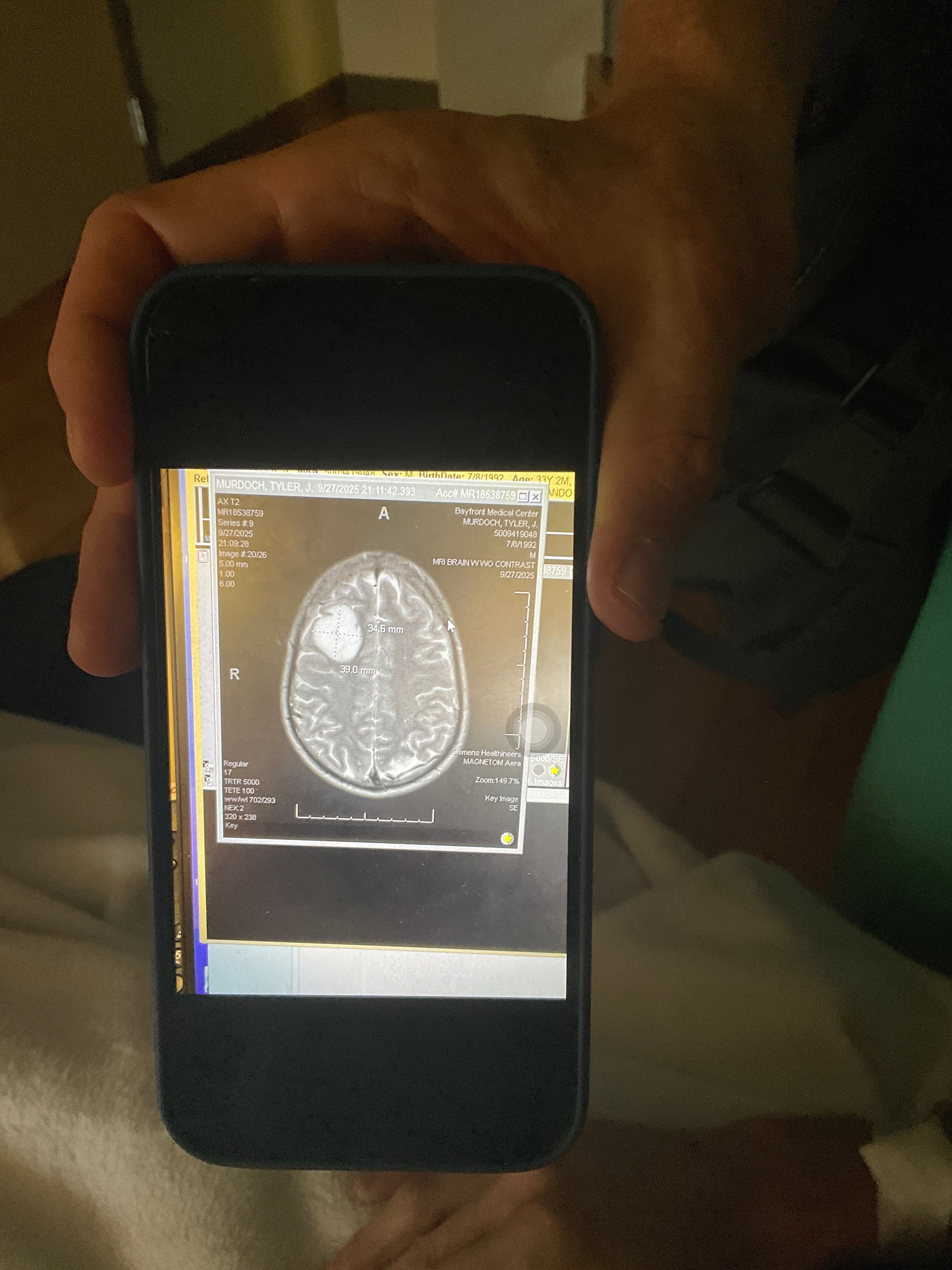The hospital performed a MRI on my brain, to which we found the unfortunate cause of my seizure.