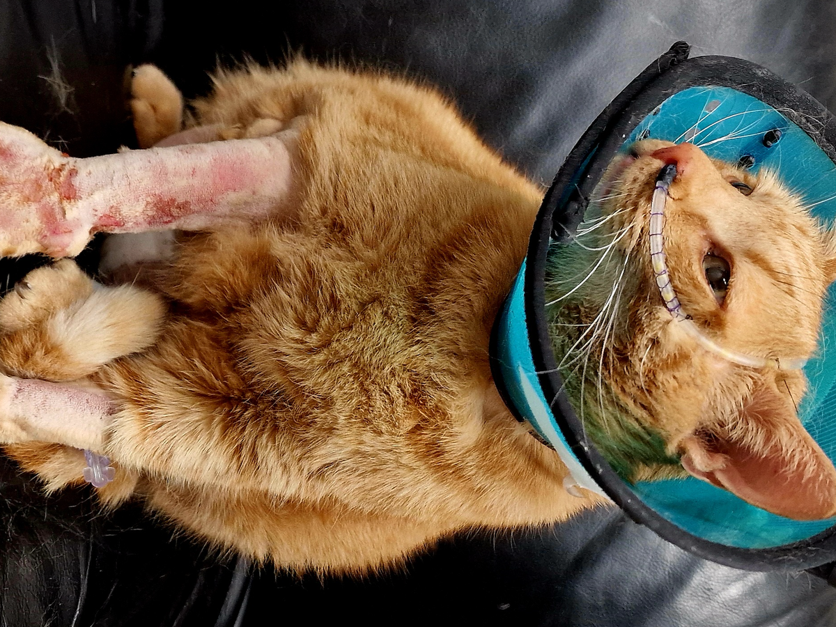 Wir haben ihn einen Tag nach der OP besucht und waren erschrocken, weil er nun auch noch,ein stark geschwollenes Bein hatte, vorher jedoch nicht.