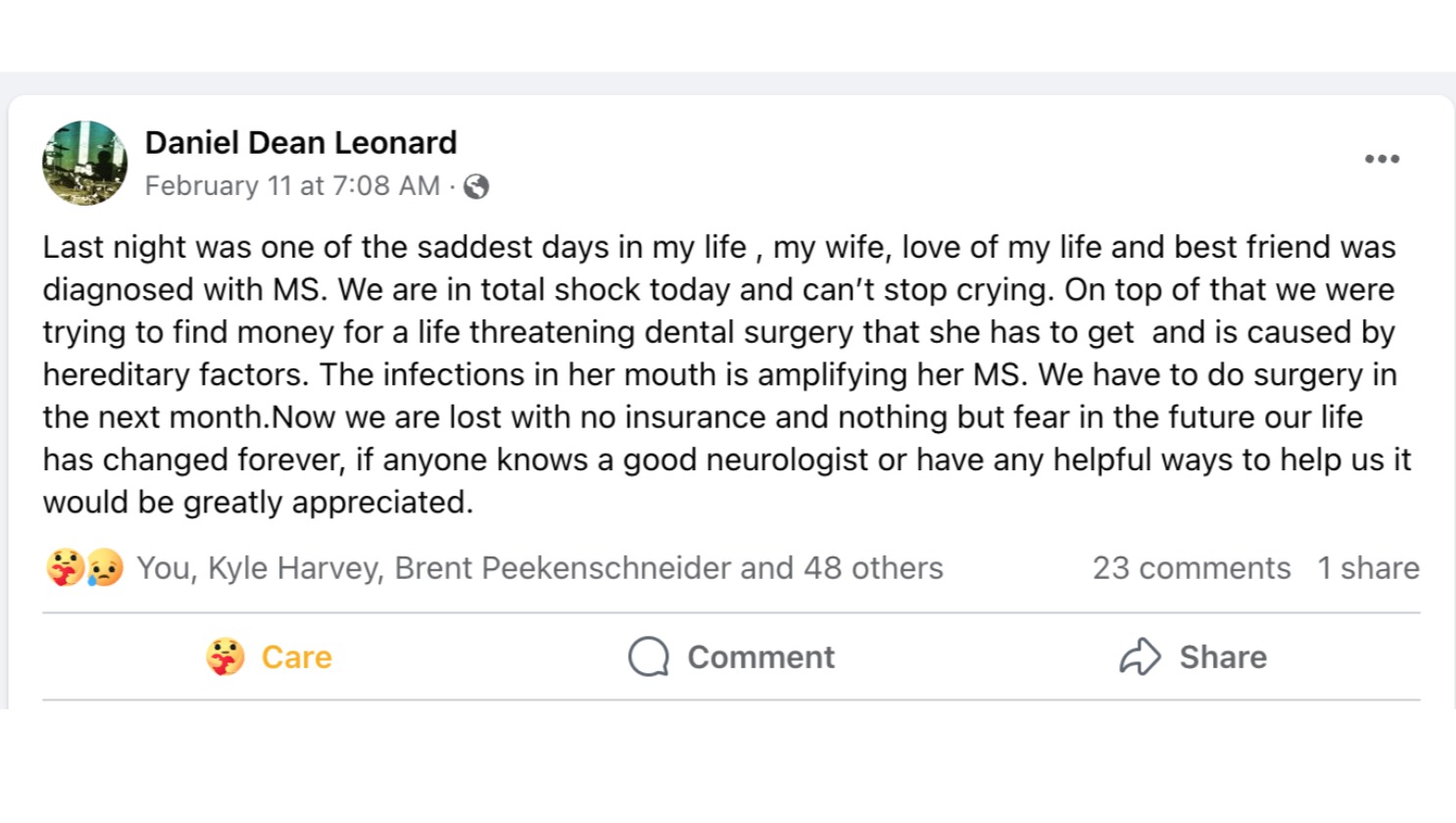 These are kind and true people who do not deserve to have this medical and financial burden be part of their life experience. Please help.