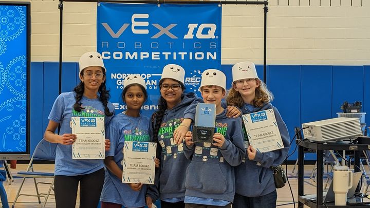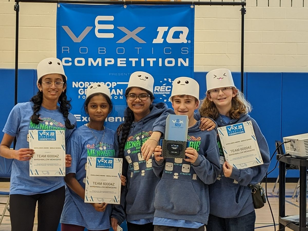 A little about the team. The Marshmallow Menagerie consists of 4 girls and 1 boy which is unusual for a robotics team. During competition season, they meet up to three hours a night to work on their robot! That's quite the commitment. The team has a goal this year to be division finalists. That means, they will need to be one of the top 20% of teams. Last year, they made it only to the top 50. This year, they have a game plan that they are confident will get them to their goal.