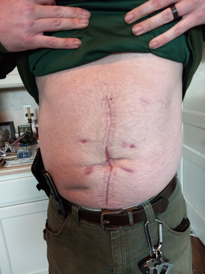 Last year, 2024, Seth's pain increased to an excruciating level. He suffered for several months before finding a surgeon willing to go in, requiring a laparoscopic surgery, to see if anything could be done to alleviate some of his pain. Seth was then opened up, and a full-blown operation began. The surgery exposed two deep hernias tangled in his intestines, and they repaired a mild rotation, removed the hernias, and his appendix. He spent a week or so in the hospital, then 36 hours after he was released, he was in emergency surgery due to his intestinal wall collapsing. He was in the hospital then for almost a month and was continuously throwing up stomach and stool contents. In January of this year, he was once again admitted to the hospital after he collapsed in the yard. He was there for 4-5 days. The surgeon was honest that Seth would never be "normal" and that was nothing they could do to "cure" this and that he can expect to be in pain for the rest of his life. Some doctors have never even heard of Gastroschisis!!!