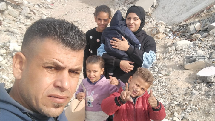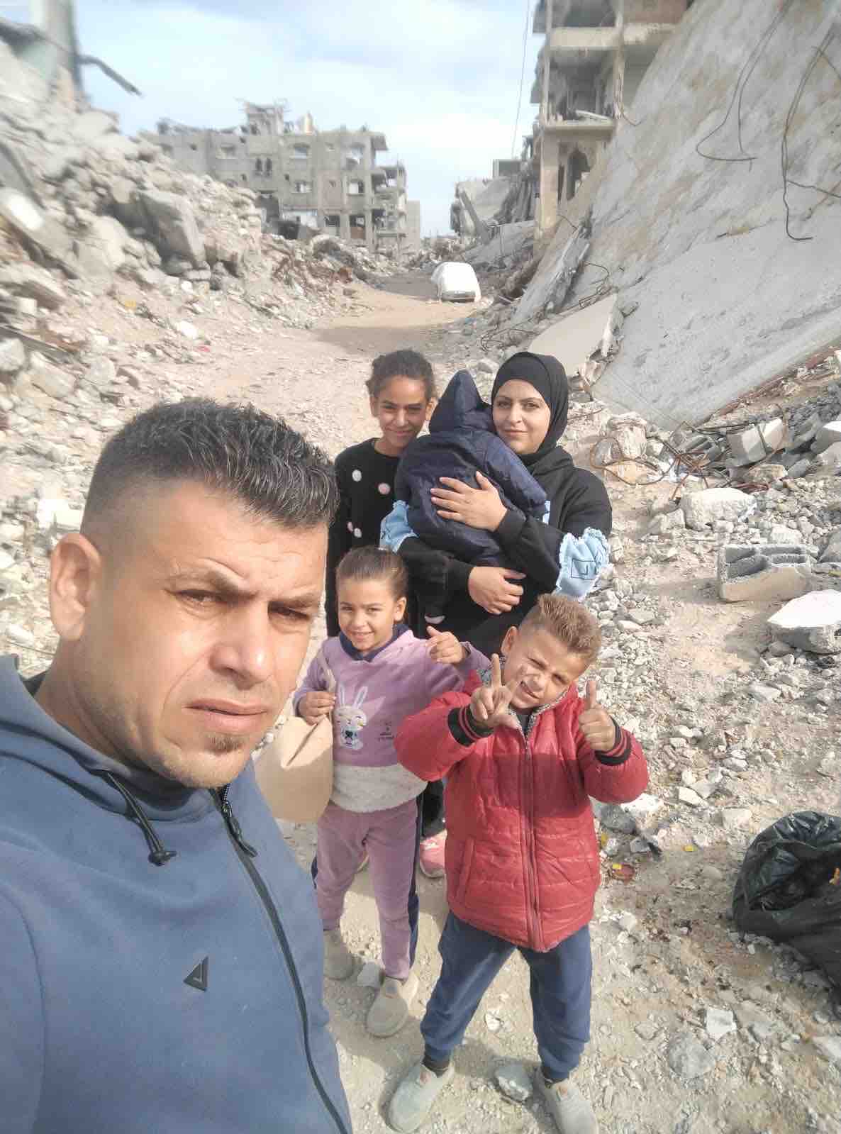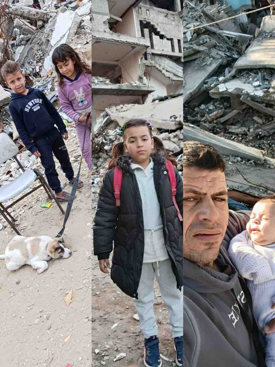 Shatha Islam Salim Al-Washahi, Khaled Mustafa Ahmed Al-Taramsi and their four young children are living in dire circumstances after their home in northern Gaza was severely damaged. They are now residing in this ruined building, without income or basic necessities. The family has faced displacement, with Khaled losing his job due to the bombing, and the tragic loss of Shatha's father and brother. Despite these challenges, they are striving to rebuild their lives and secure a future for their children. Donations collected here are used to provide basic necessities such as food, rent, clothing, and other essentials for living with the young children. The family expresses their deep gratitude for any support offered during these difficult times.