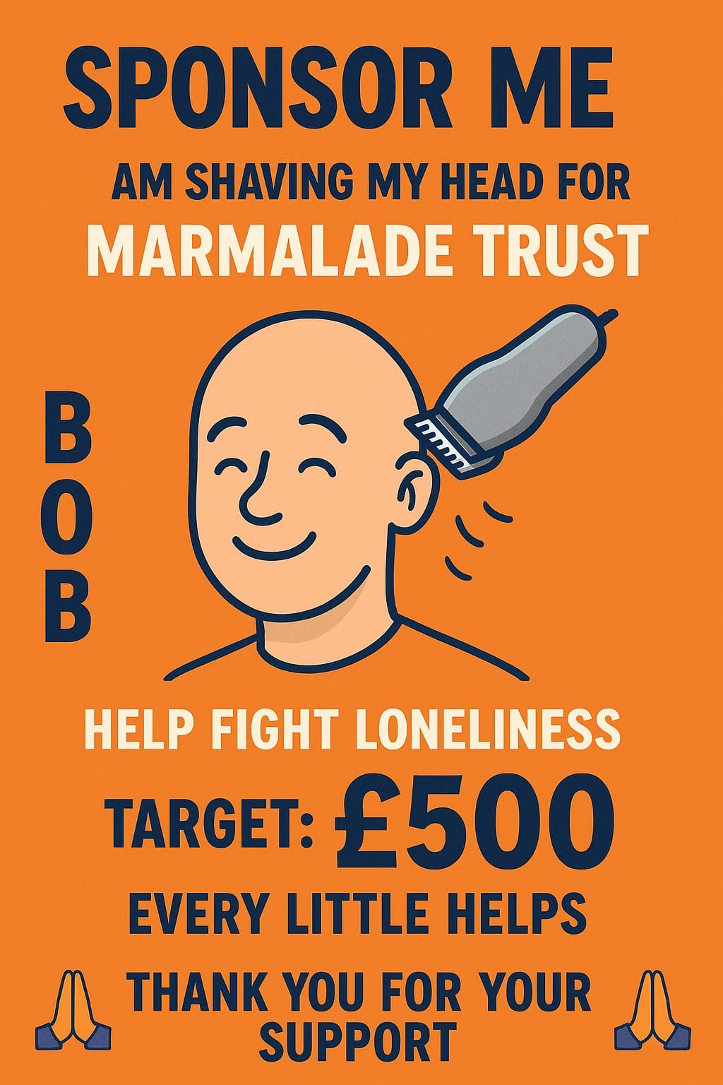 Do you want to join me in making a difference? I'm raising money in aid of The Marmalade Trust to help fight loneliness in our community and every donation will help. Thank you in advance for your contribution to this cause that means so much to me.