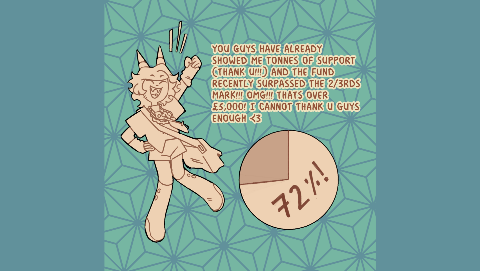 You guys have already showed me so much support! (Thank you!) And the fund recently surpassed the 2/3rds mark! OMG! That's over £5k! I cannot thank you guys enough!