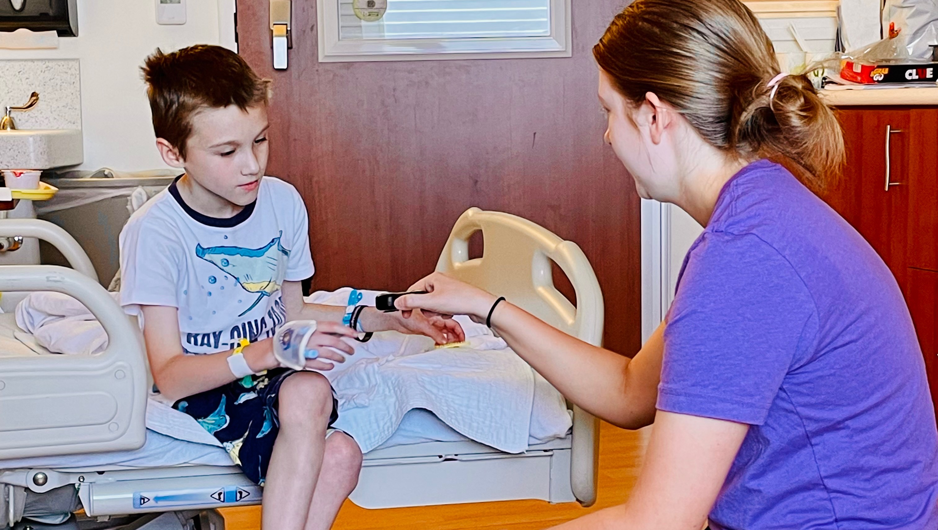 Marshall and Erin Sheffer’s son Logan (8) was recently hospitalized at Lurie Children’s Hospital. After being rushed to the ER straight from his pediatrician’s office, Logan was diagnosed with type 1 diabetes. Logan’s body was in DKA which means his blood had become acidic due to the high blood glucose levels. DKA is extremely painful, exhausting, and life threatening. Upon admittance to the hospital, logan was just 44 lbs. Over the course of the week, the amazing team at Lurie trained Marshall and Erin at Logan’s bedside to provide the care logan would need at home.