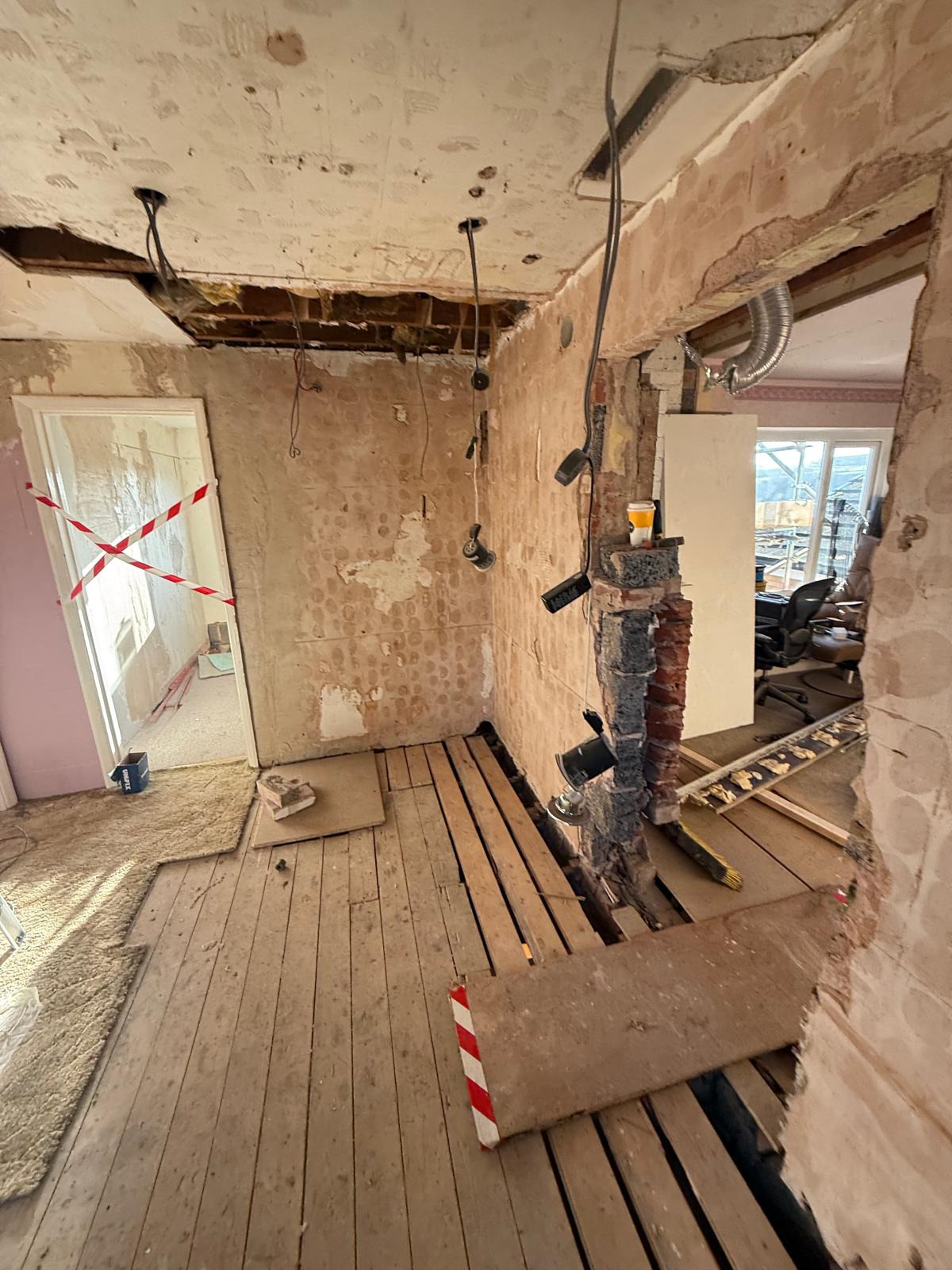 Unfortunately, accidental failures during construction left the house partially demolished and unsafe. The builder didn't complete the project, or return to repair the damage, and in late January we learned he'd gone bust. We've been displaced since September, and have now had to move 12 times, often relying on friends or friends-of-friends while trying to make the house safe again (we don't have family near Sheffield).