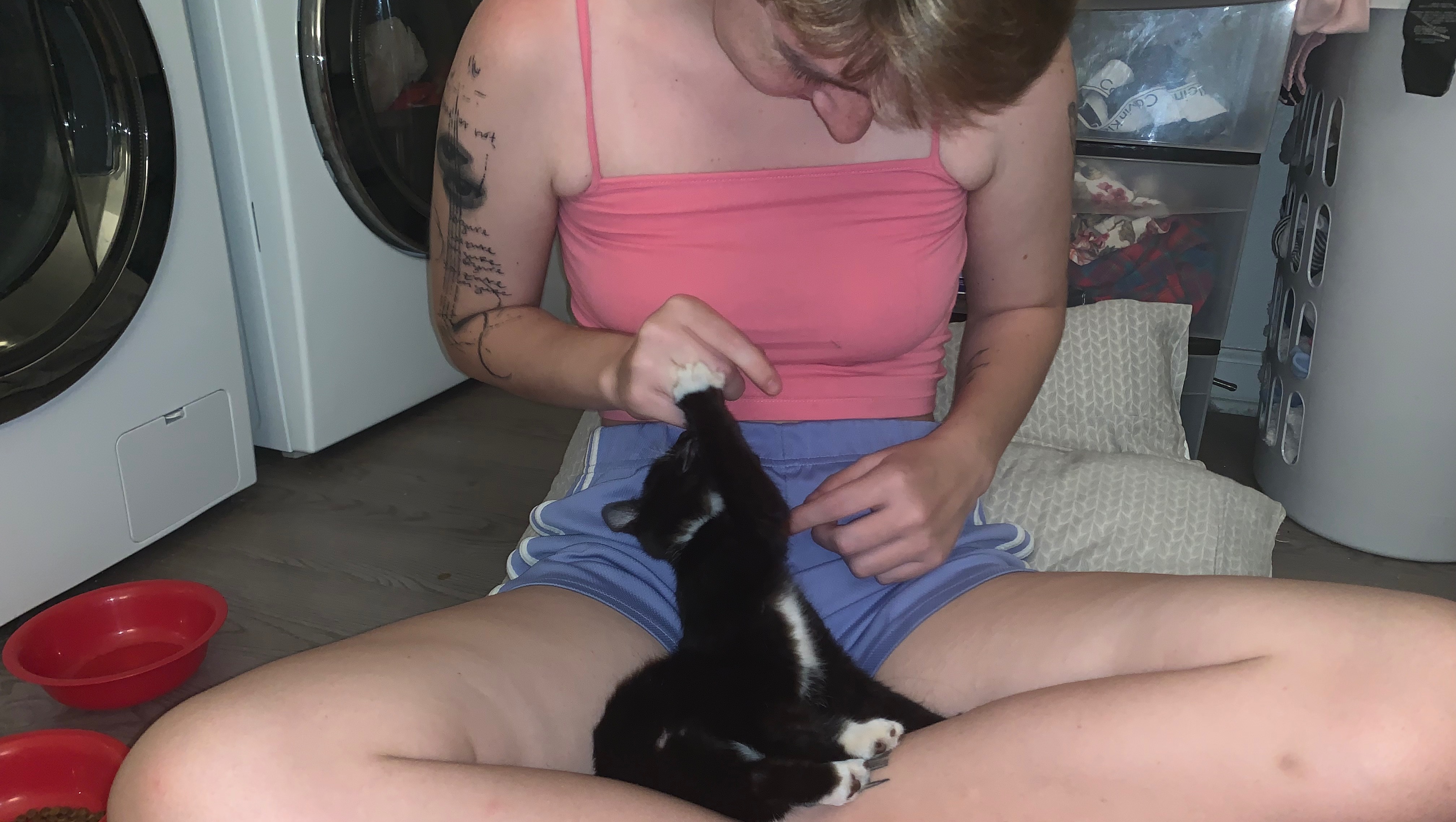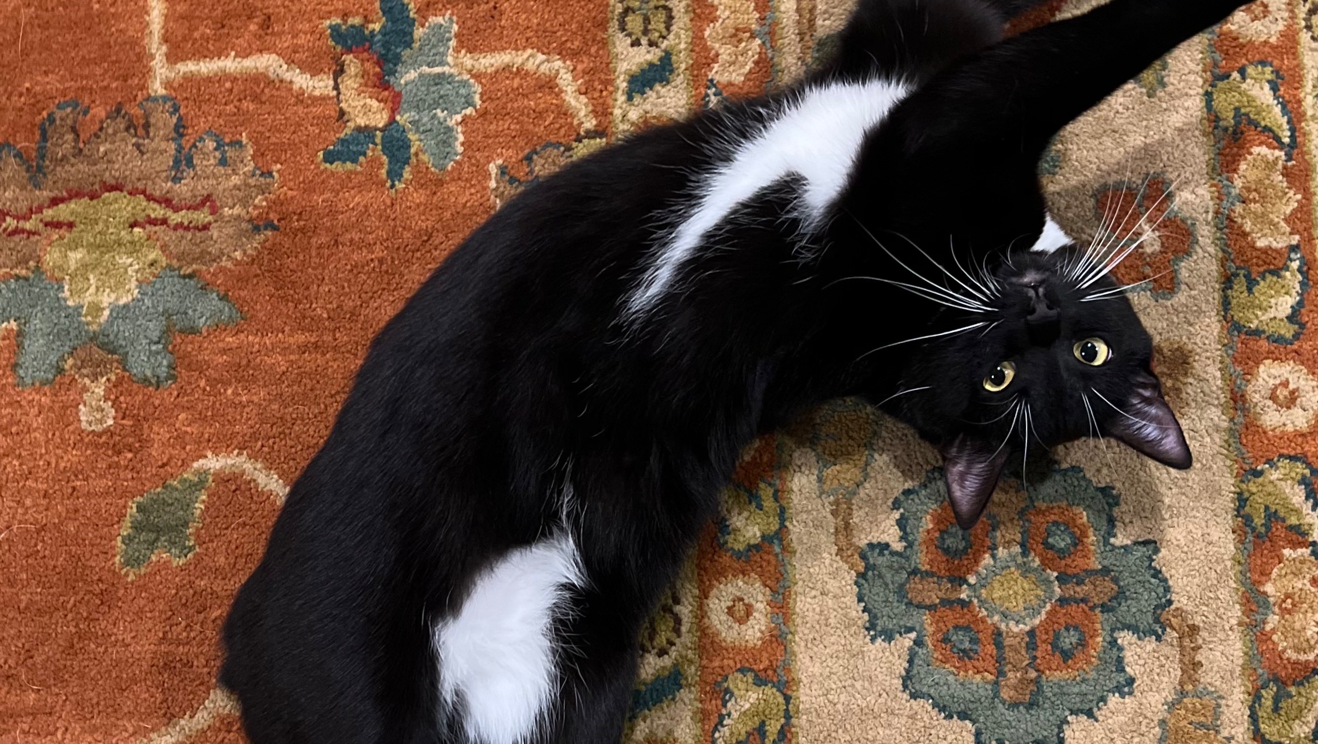 I was thinking about adopting a male tuxedo kitten to keep my adult tuxedo, Sybil, company. On July 7th, 2021 an incredible, little dude approached my mom on the streets of Oxford, Mississippi. He was very tiny and very noisy. I named this baby after the Hebrew word for seven: Sheva.
