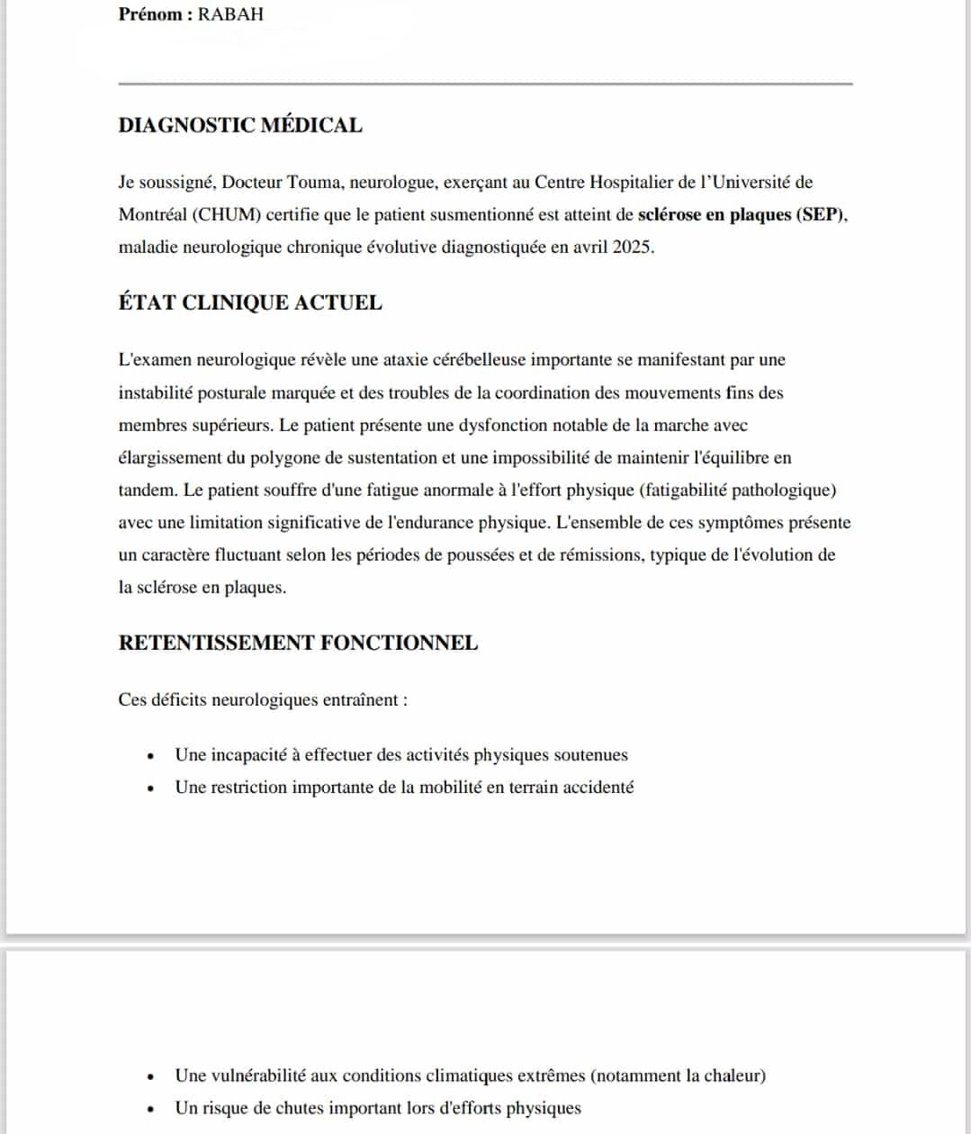 Je suis un jeune homme , venu au Canada pour poursuivre mes rêves et construire un avenir meilleur. Au final, j’ai été diagnostiqué d’une sclérose en plaques, une maladie auto-immune et dégénérative qui affecte directement le système nerveux.