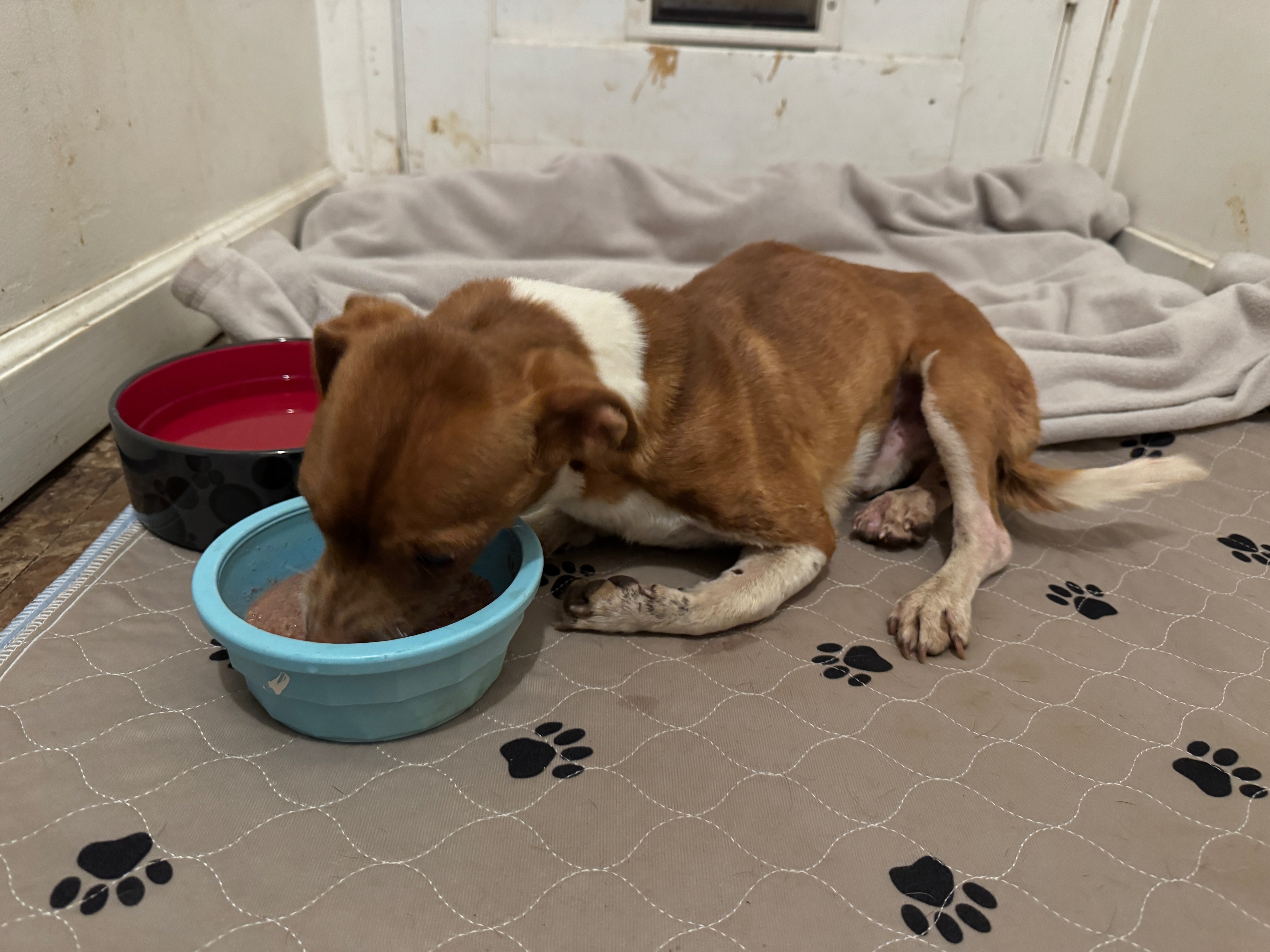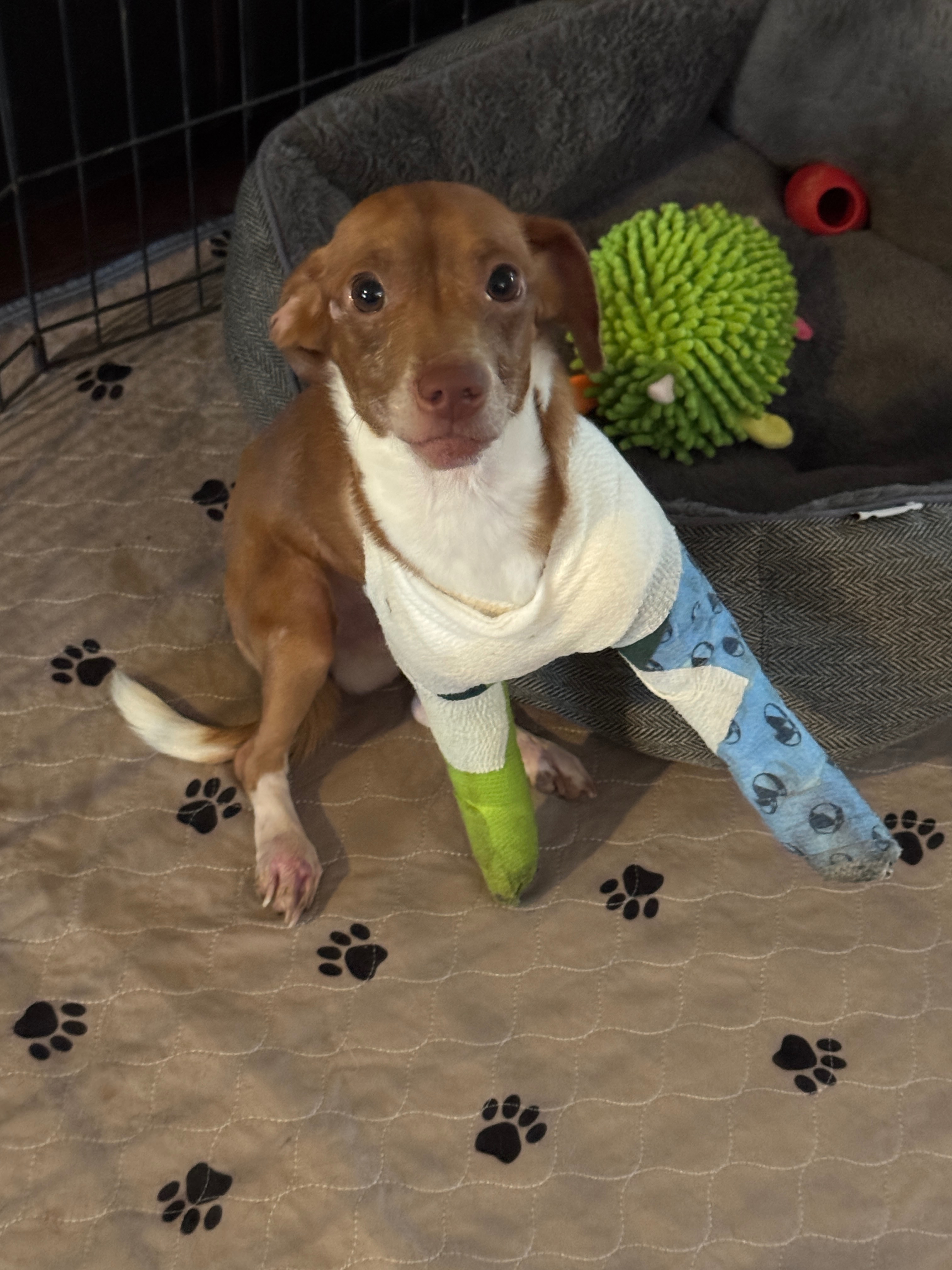 We rushed him to emergency care, where he was stabilized, treated for shock, and given fluids. He’s now receiving regular vet visits, bandage changes, and preparing for a critical procedure to remove bullet fragments and possibly insert pins to stabilize one of his legs. The other front leg may still require amputation if it doesn’t heal.