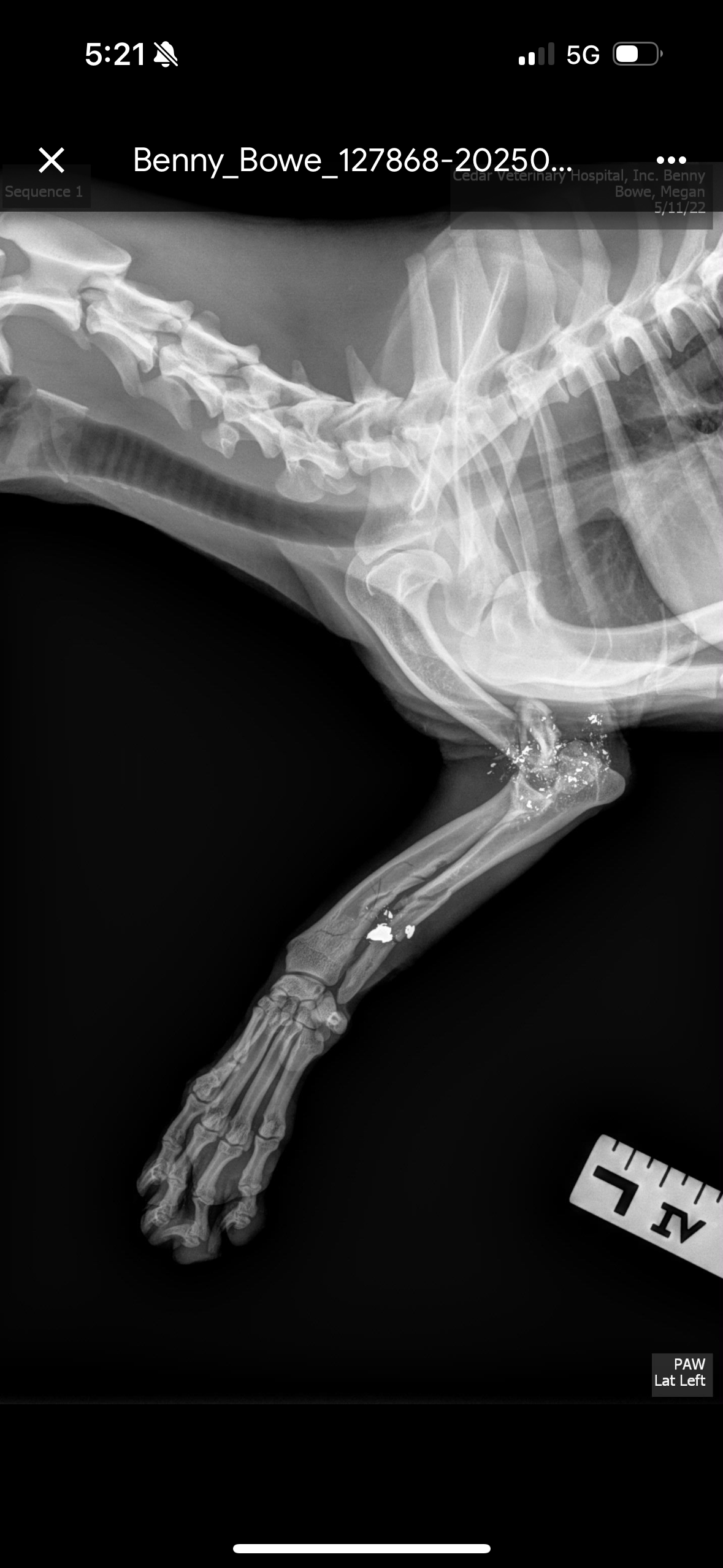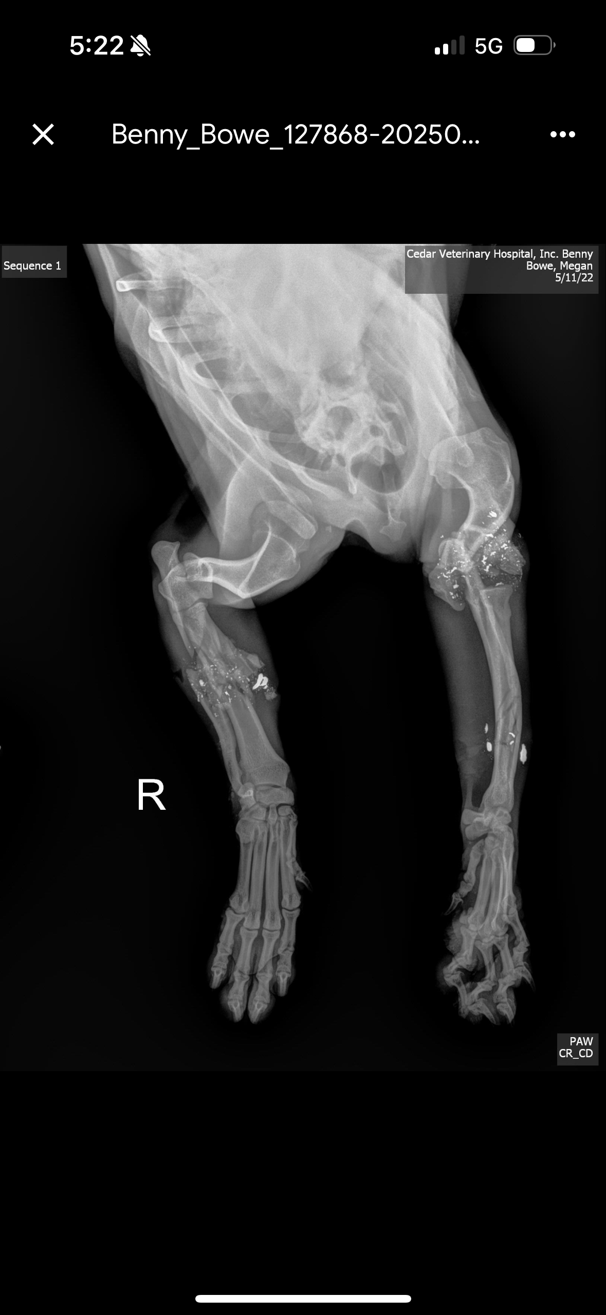 Benny was cruelly shot multiple times and left to die in an orchard south of Avenue 12 in late April. Both his front legs were broken, and his back foot was broken. He could no longer walk, but somehow he fought, crawled, and survived until help arrived. He was in excruciating pain, too weak to cry out or defend himself. Warning: The photos, x-rays, and videos are disturbing.