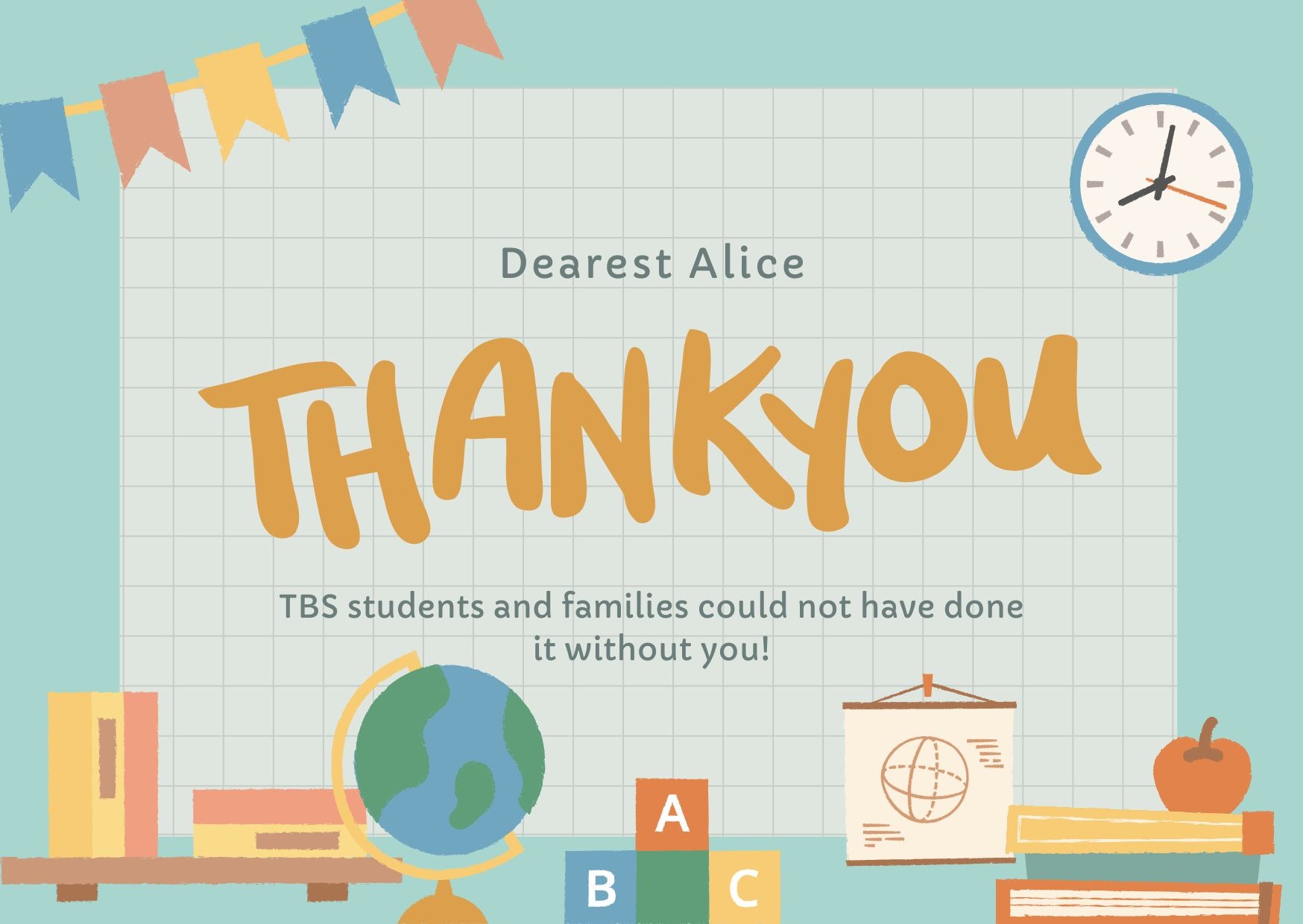 As many of you know, Alice is among the educators being laid off this year—a change that’s deeply felt by students, parents, and staff alike. From first smiles to first steps in learning, they have poured endless care, creativity, and heart into our children’s early education. This fundraiser is a small way for our TBS/ECC families to express our appreciation and gratitude.