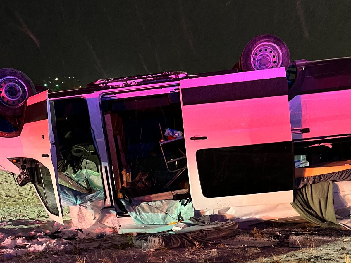 Early this morning, while driving through rural Wyoming, our driver hit a patch of ice and our vehicle spun and flipped, rolling off the road.
