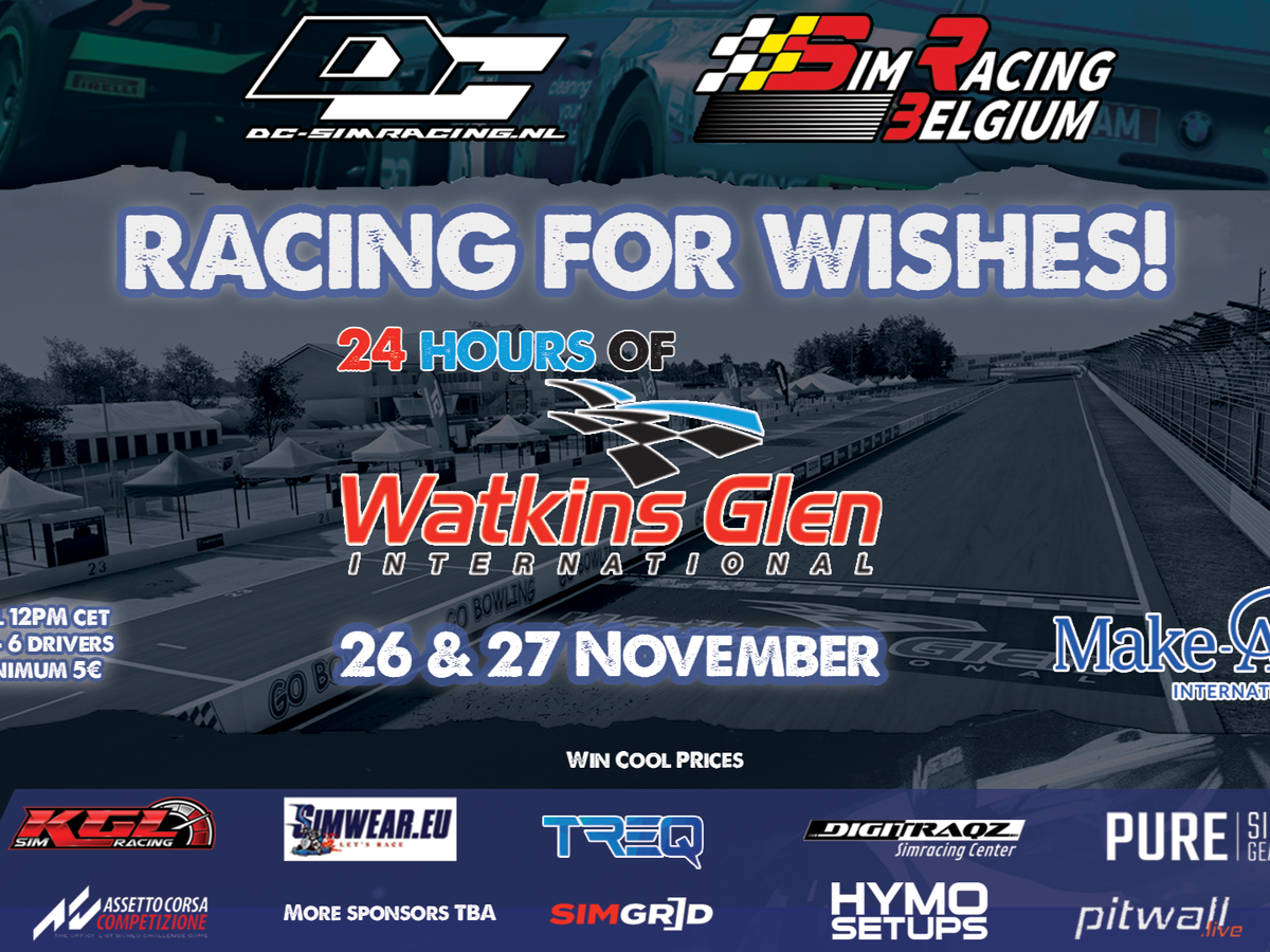 Als DC-SimRacing organiseren we samen met Sim Racing Belgium een 24 uurs race op 26 en 27 november om zoveel mogelijk geld in te zamelen voor de Make-a-Wish foundation.