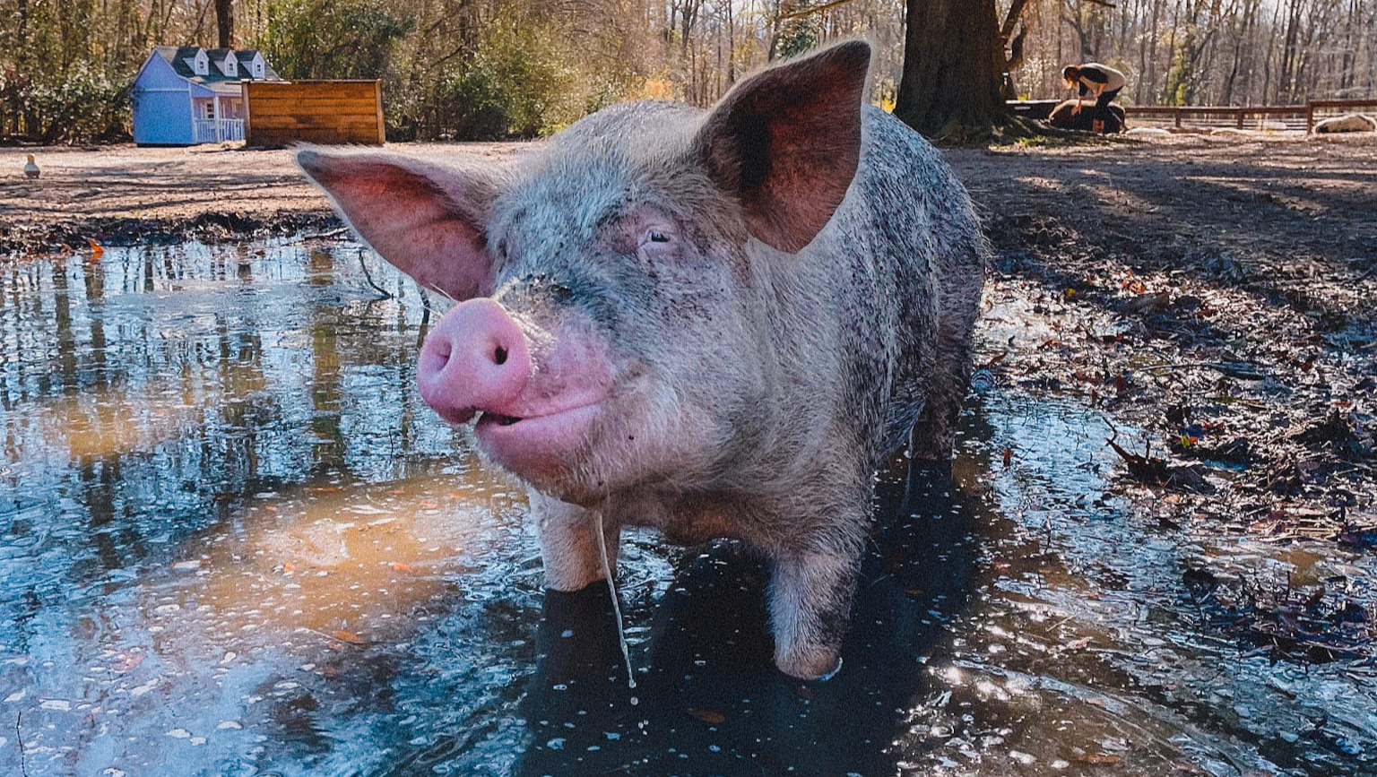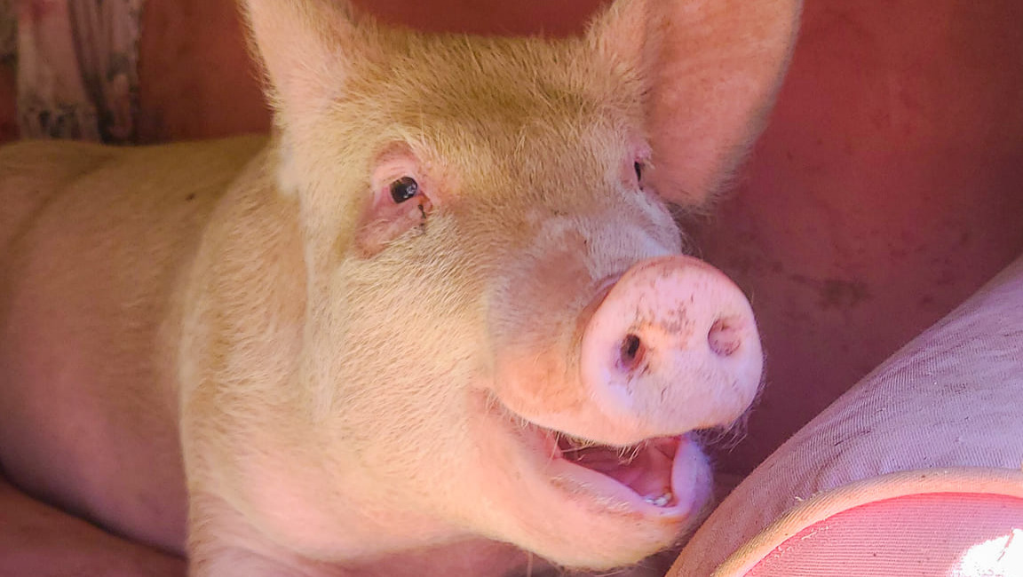 Hannah was born on a commercial pig farm without any hooves—her bones simply stopped growing where her ankles should’ve started. On factory farms, any piglet born with even a mild disability is immediately culled. But one farmer couldn’t bring himself to follow through when he was told to kill her. He saw something in her—a little spark, her will to live. He risked everything to save Hannah, but he knew she was special, and that single act of kindness sent her down the path that led to us.