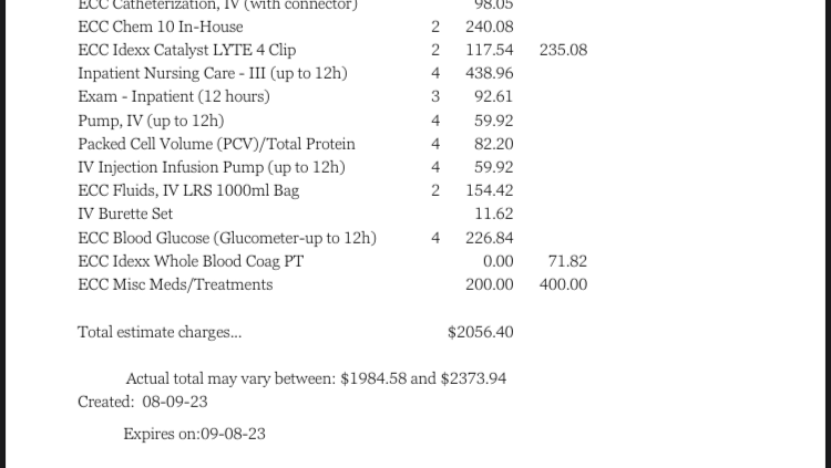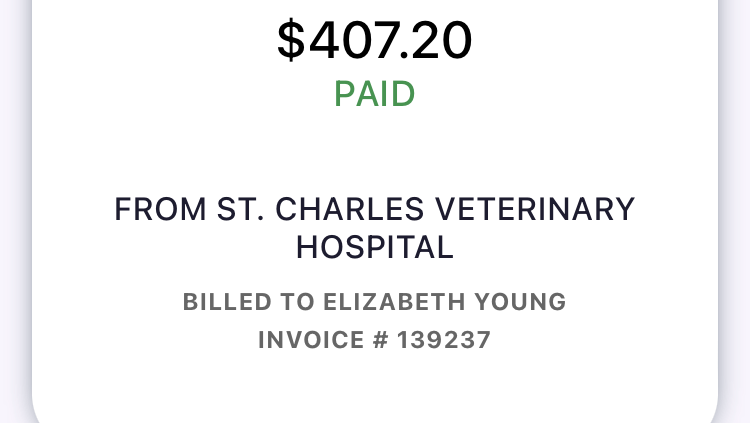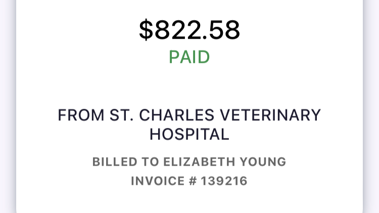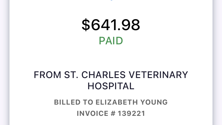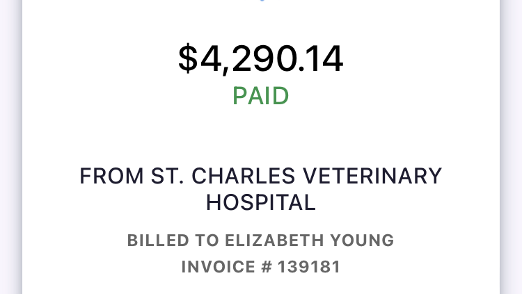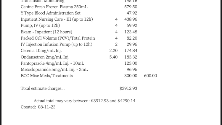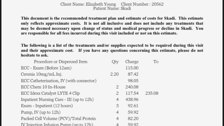 Skadi’s latest bill, for hopefully her last couple of hospitalization days! I unfortunately have to raise up the GFM but it’s not as much of a raise up