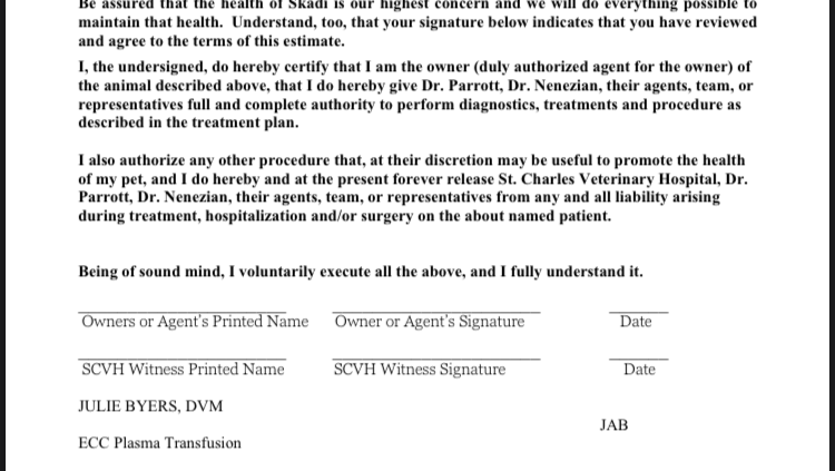 Sunday PM update: Skadi took the rest of the transfusion wonderfully and the techs have seen her perk up, she’s been eating on her own too! Because they are testing the clotting times 8 hours after the transfusion is done, we won’t know until later tonight. But we have been assured, no news is iid news, and may receive a call tomorrow instead.