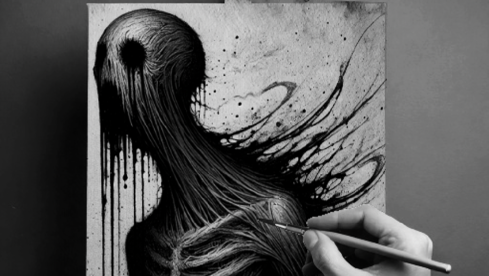 ‘Esquisse Noir’ is a phycological horror film about Frankie, an artist who has been hired to draw draw a generic, corporate piece of art for a soulless company. As the requests of her employers get more mundane, Frankie finds herselft distracted by drawing a strange monster. Soon she can’t help but draw anything else and the monster takes over her body as well as mind.