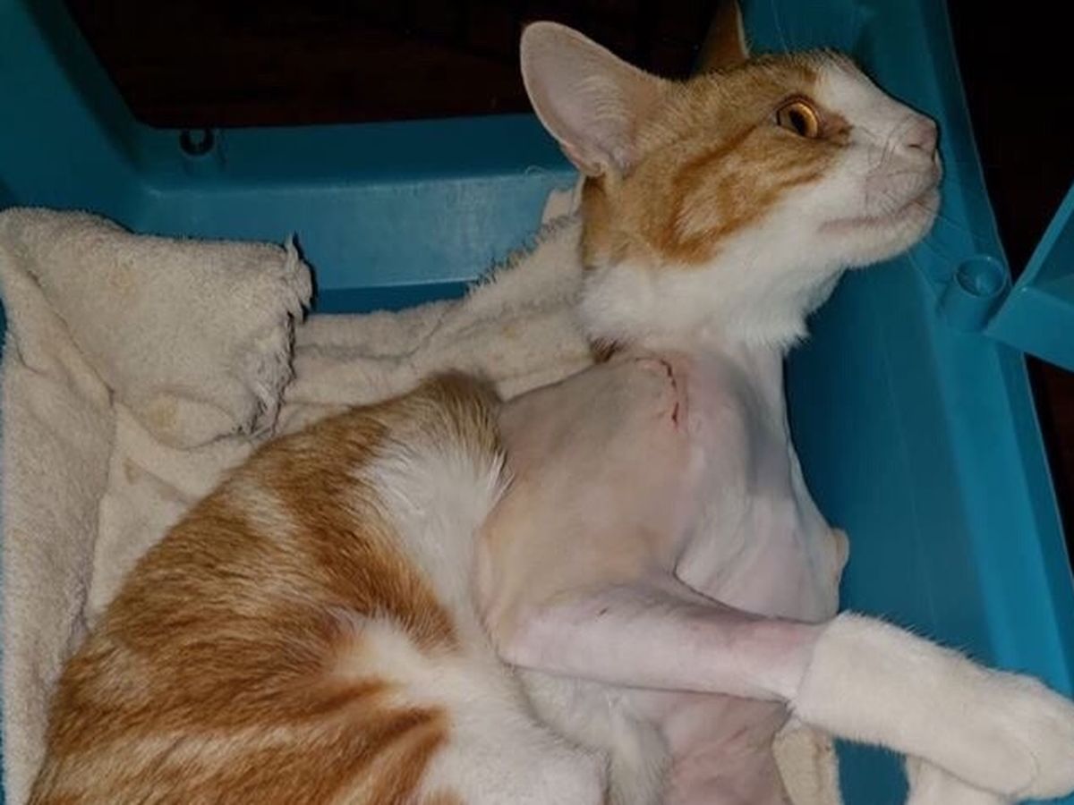 Skippy fought so hard to live dragging himself over ten days that his family felt that there was no other choice but to do surgery, as he is only a year and a half old. The surgeons prognoisies is for a full recovery and he will be able to go back to being the great mouser in their barn that he was.