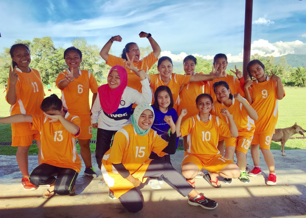 (My girls' team is strong, fierce, and goofy. They just smile when people say girls can't play sports.)This kindness has developed despite serious challenges. Most of my students come from "kampung" or village communities, often with limited electricity, water, and income. Though they never complain, many students can't afford things like athletic shoes or more than one school uniform. I've often seen students get massive blisters playing sports barefoot on concrete, or come to school day after day with the same torn or stained uniforms. Many students also live separately from their families for months in the school dorms, only going home for holidays, because their families can't afford to house them or their village is too inaccessible.