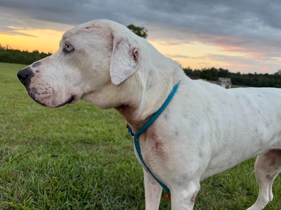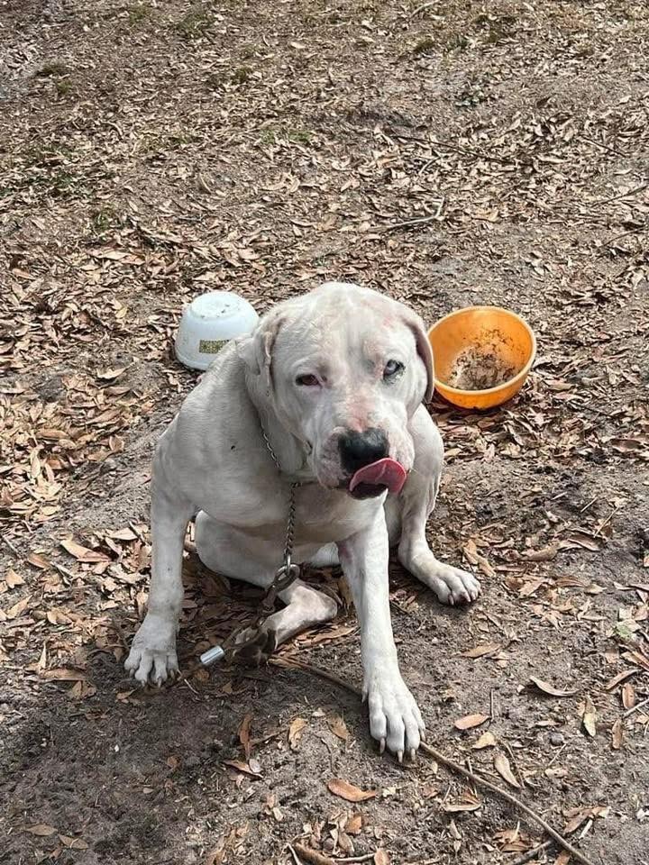Snow came into the Hazlehurst Animal Shelter in mid-April 2025 after months outside on a chain in the dirt and without shelter. She was once a beloved dog, but sadly her owner passed away and his family moved her outside before eventually surrendering her to the shelter.