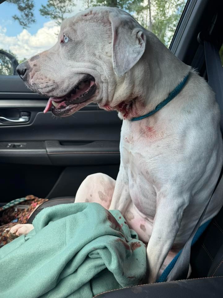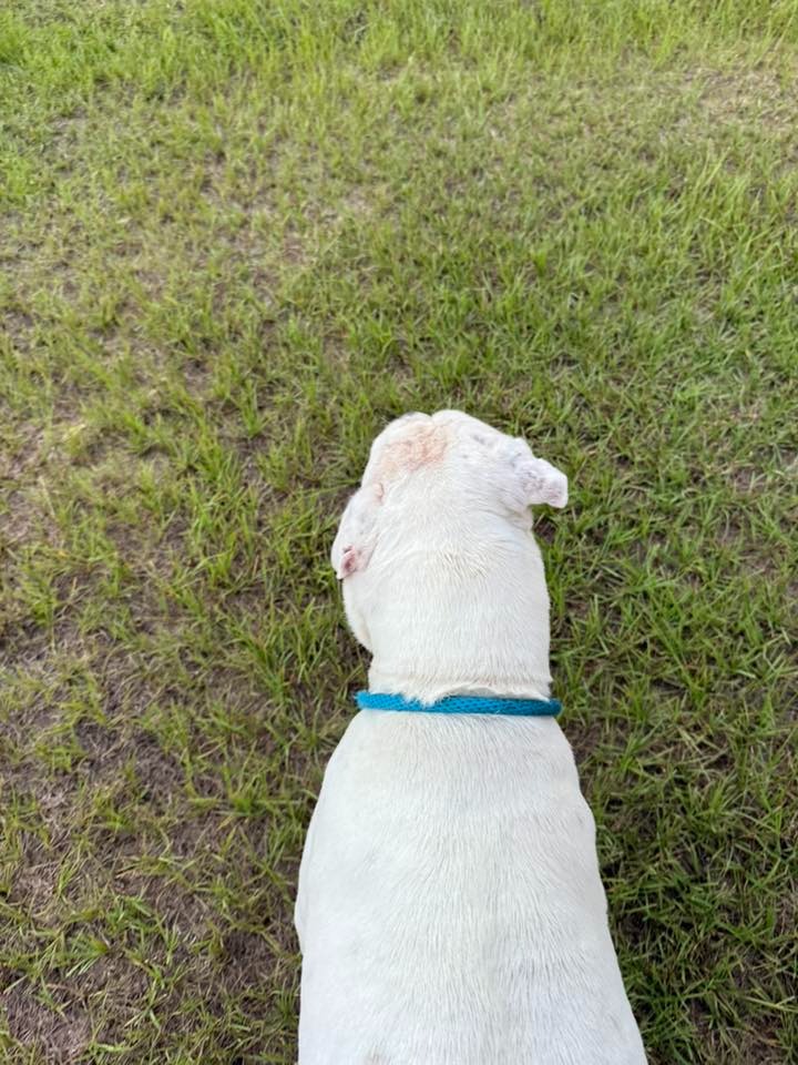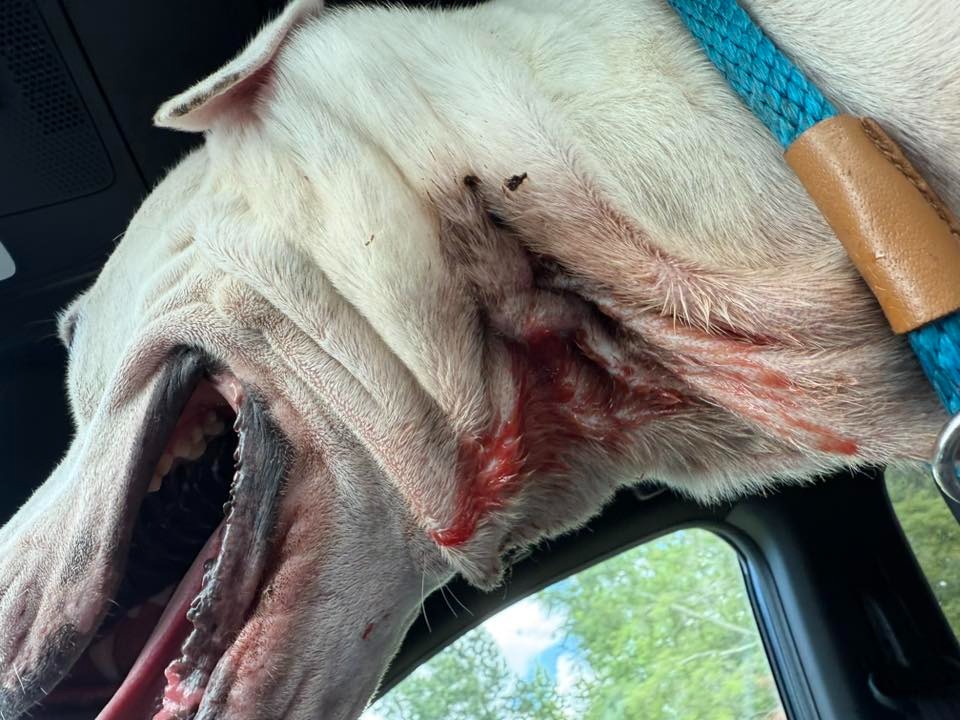 Thursday night, June 5th, Snow's foster momma came home to see massive swelling and blood coming from the neck wound, and we quickly made her an appointment. While steadily dripping blood and swollen face and neck, Snow was brought to the vet Friday, and after a phone call with a specialist, it is believed her neck oozing and now swelling between the TECA ear and neck is related to the previous TECA surgery and being outdoors for a prolonged period, with an outside chance of a foreign body being present in her neck. We are seeking support for immediate sedated skull x-rays and surgical treatment to get Snow back to a healthy place and eventually into her permanent home. Please consider a donation to Snow’s care.