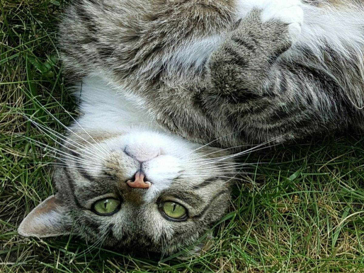 He was a feral cat who I took in and watched him transform from a frightened little kitten to a happy, calm and loving cat!!