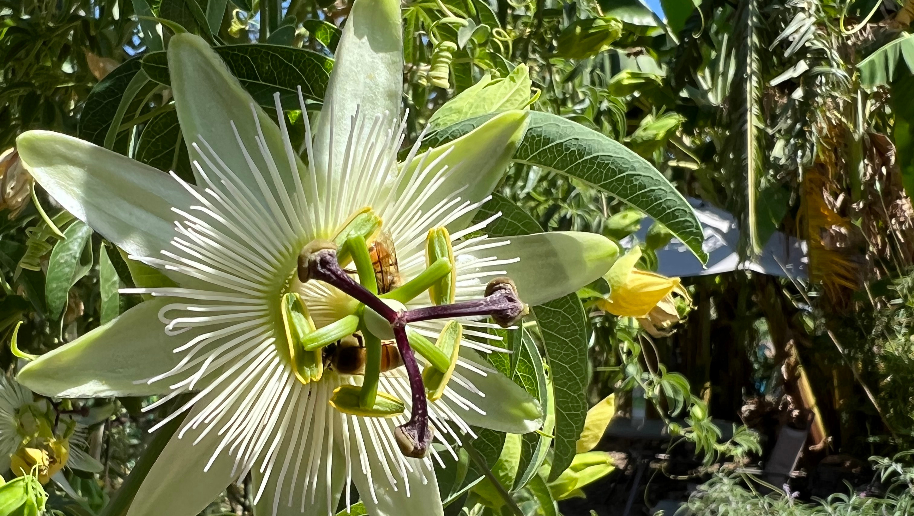 Furthermore, SFUA caters to their visitors with numerous spaces to rest and enjoy nature hard at work. All of their chickens are named and housed in a great home with plenty of room to roam and graze. Most of the year, the grounds are graced with various butterflies, pollinators, and migratory birds. You can find as many as three bees on one of the passionfruit flowers hanging from the archways. Banana trees line the paths, leaving low-hanging fruit to be enjoyed. These are just a few examples of the endless list of awe-inspiring sights here.